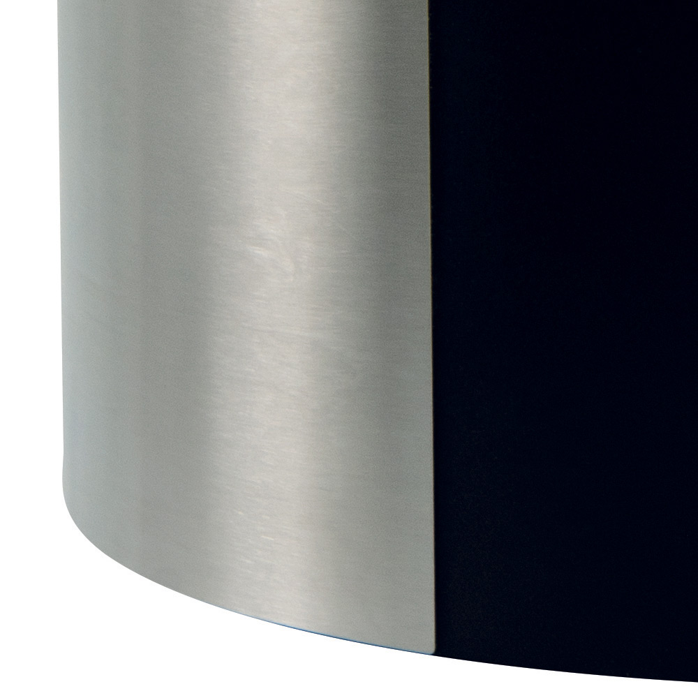 Dieser Holzholzhalter aus Metall ist eine perfekte Mischung aus moderner Funktionalität und industriellem Stil. Sein zylindrisches Design wird durch die Kombination zweier Oberflächen hervorgehoben: die Wärme von schwarzem Metall kombiniert mit der Eleganz von Stahl, wodurch ein optischer Kontrast entsteht, der die Aufmerksamkeit auf sich zieht und die Umgebung aufwertet.