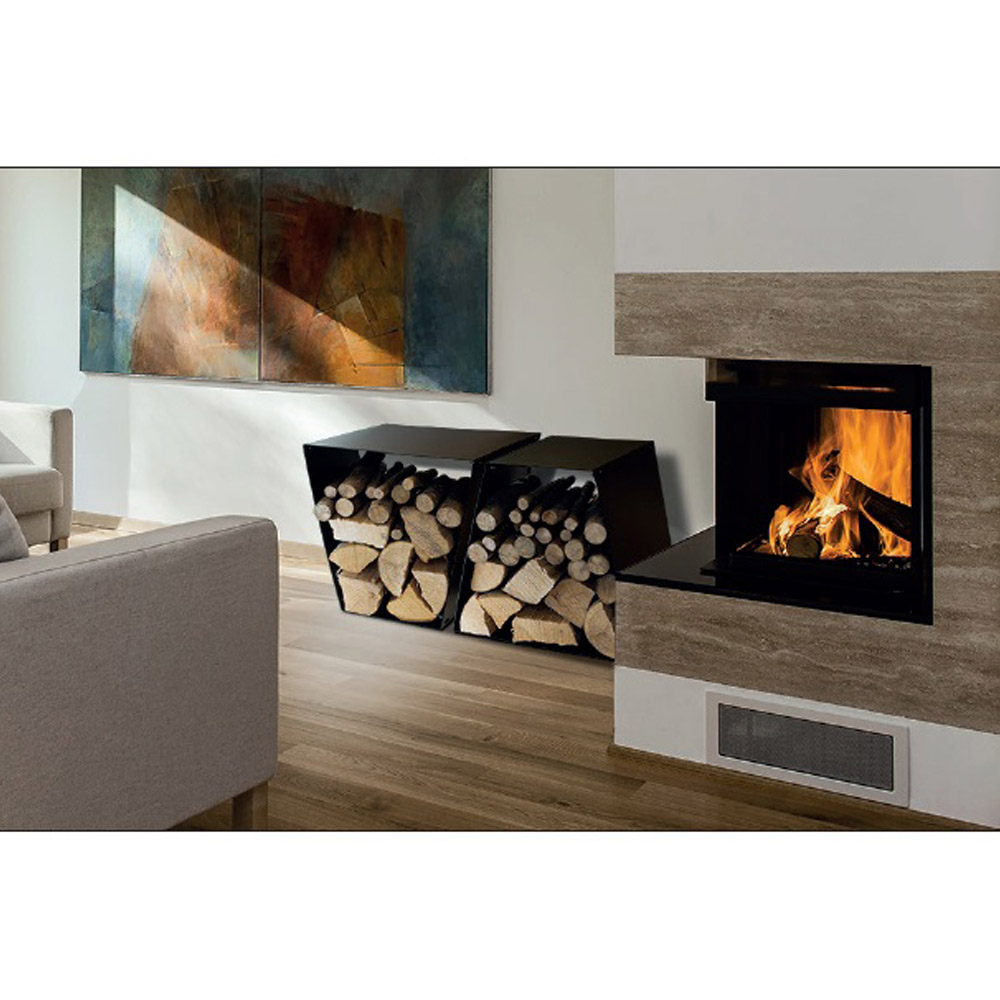 Brennholzhalter aus schwarz oder farbig lackiertem Stahl, hergestellt in Italien.