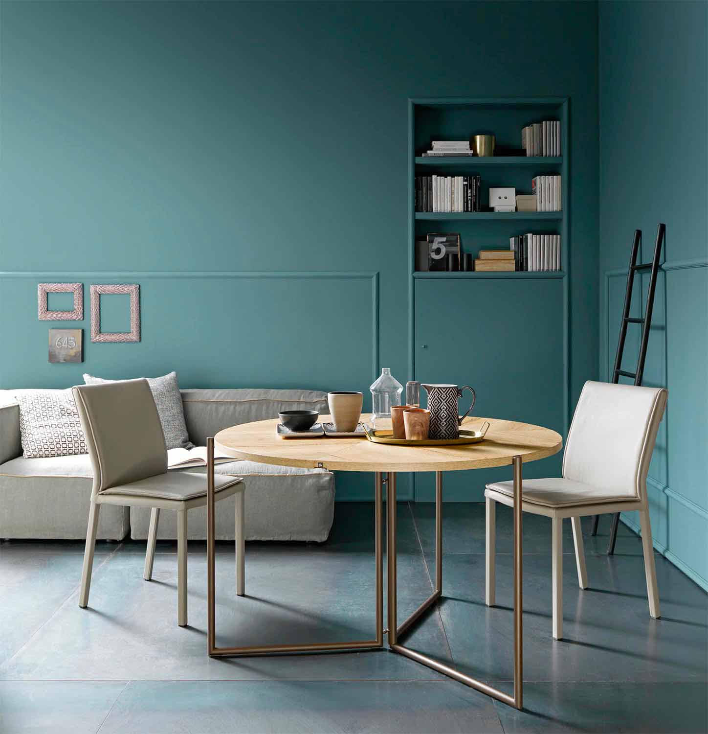 Klappbarer Design-Esstisch mit Platte aus Melaminholz und Metallgestell Made in Italy.