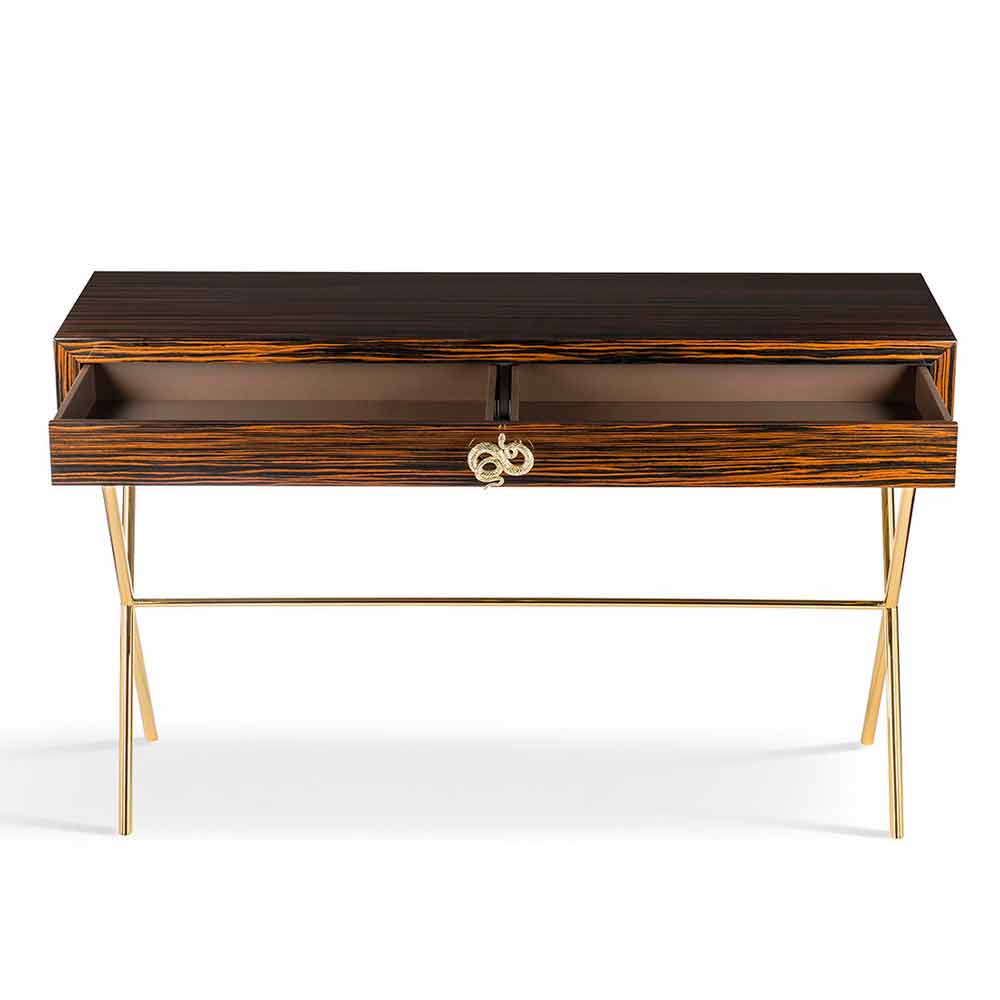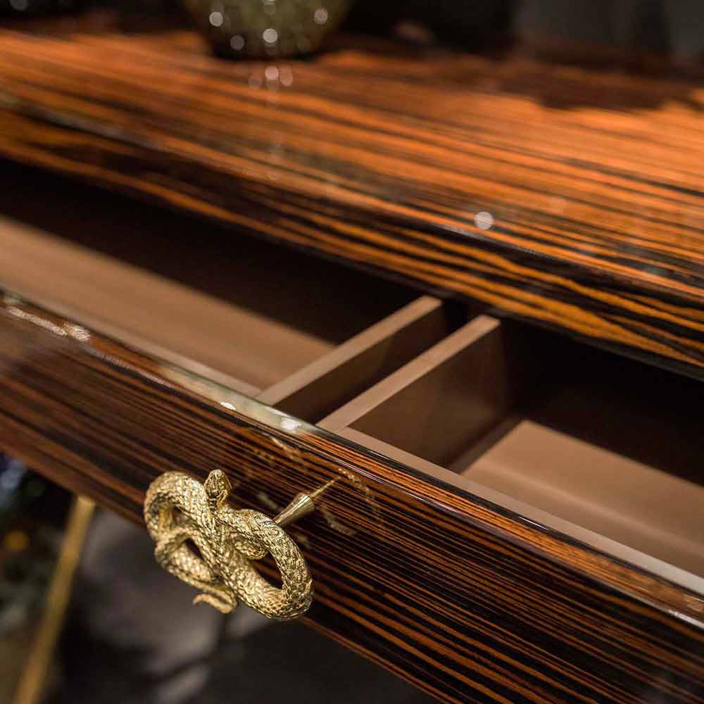 Moderner Konsolentisch Ada 4, mit Schiebeschubladen,aus glänzendem Ebenholz.