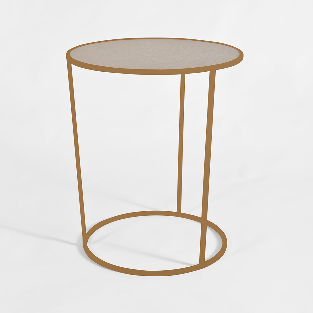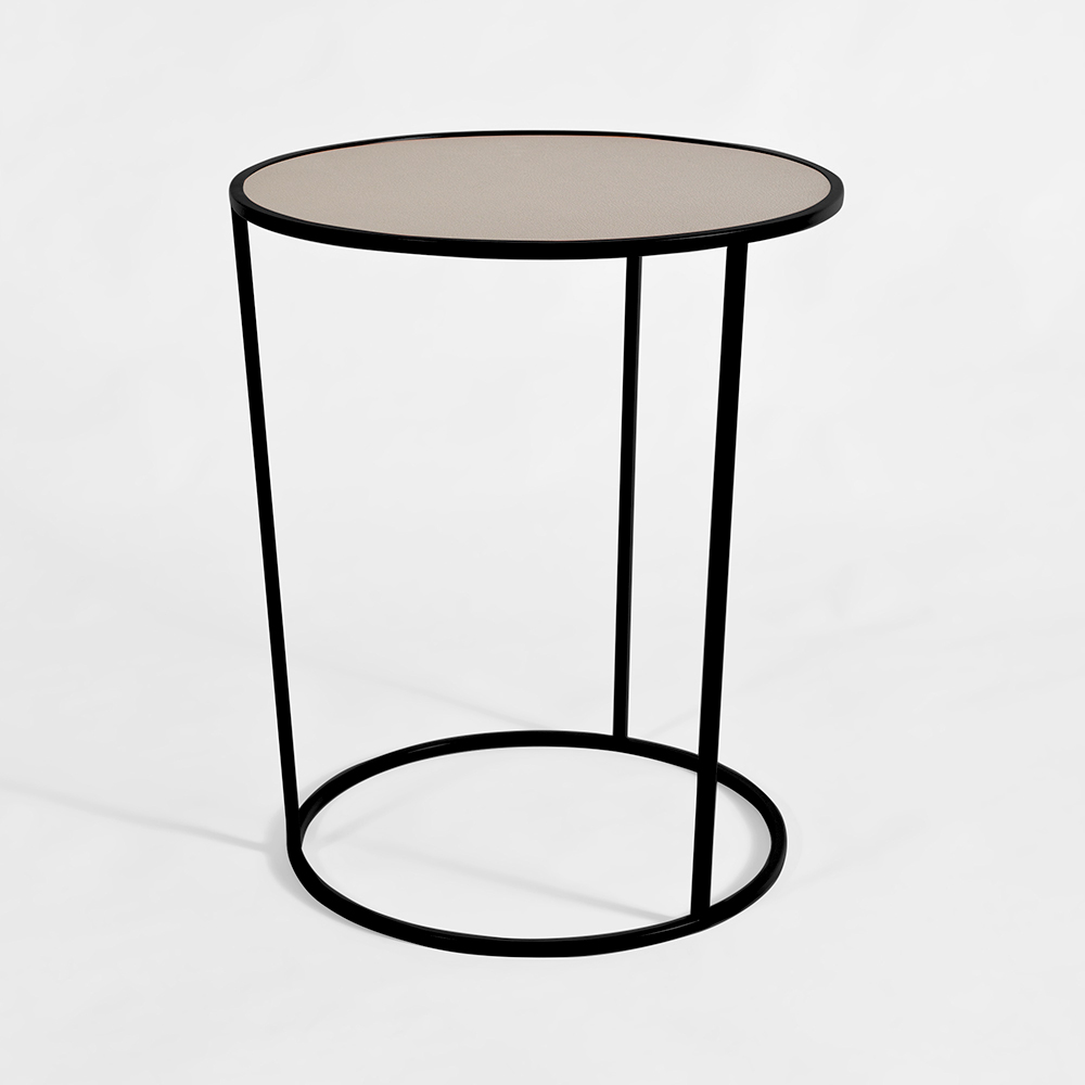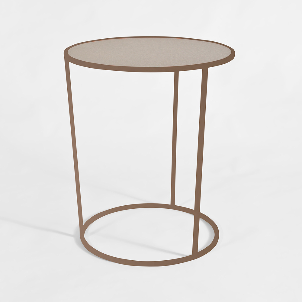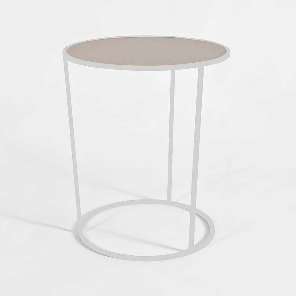 runde Couchtisch mit minimalen Linien und praktischem Gebrauch hat eine Platte aus Narbenleder-Melamin. Das