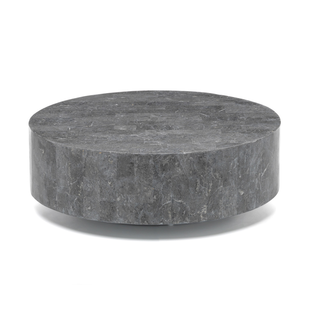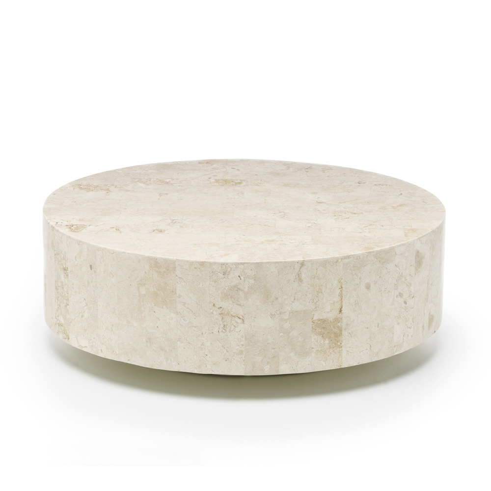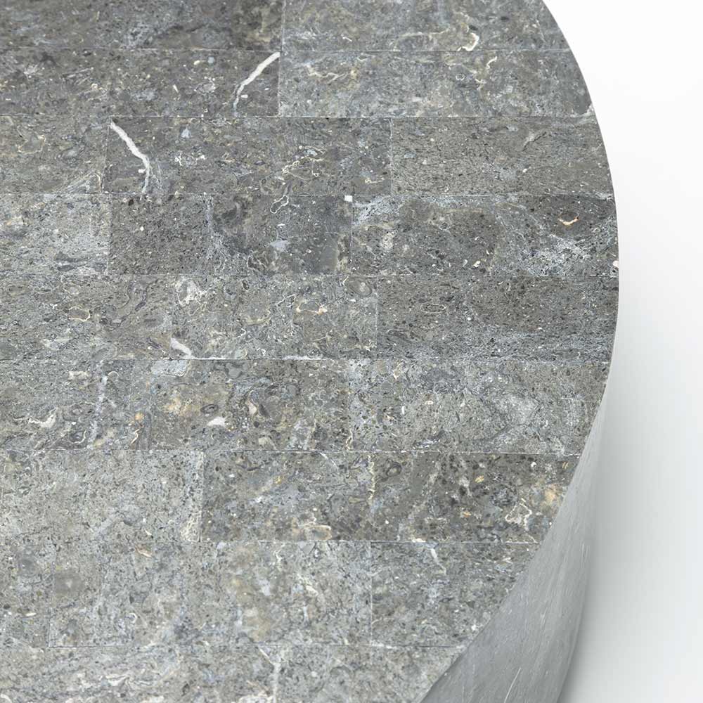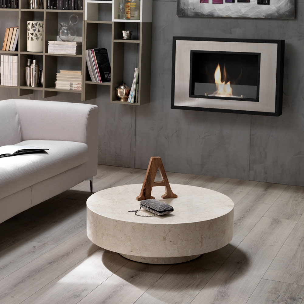 Runder Couchtisch aus Fossilstein.