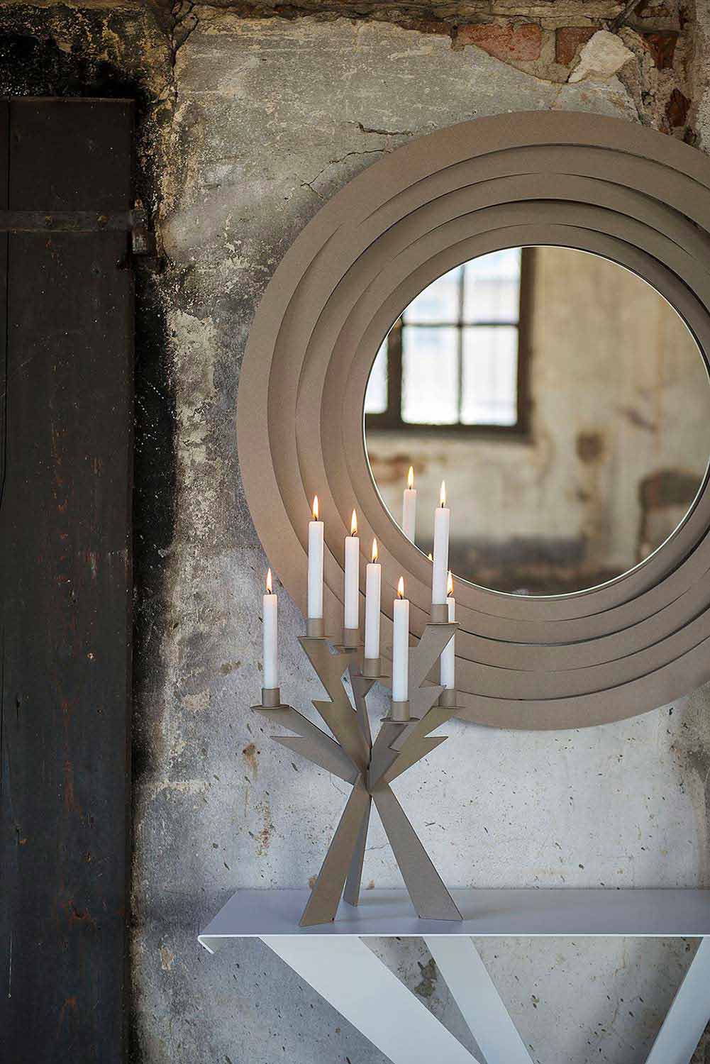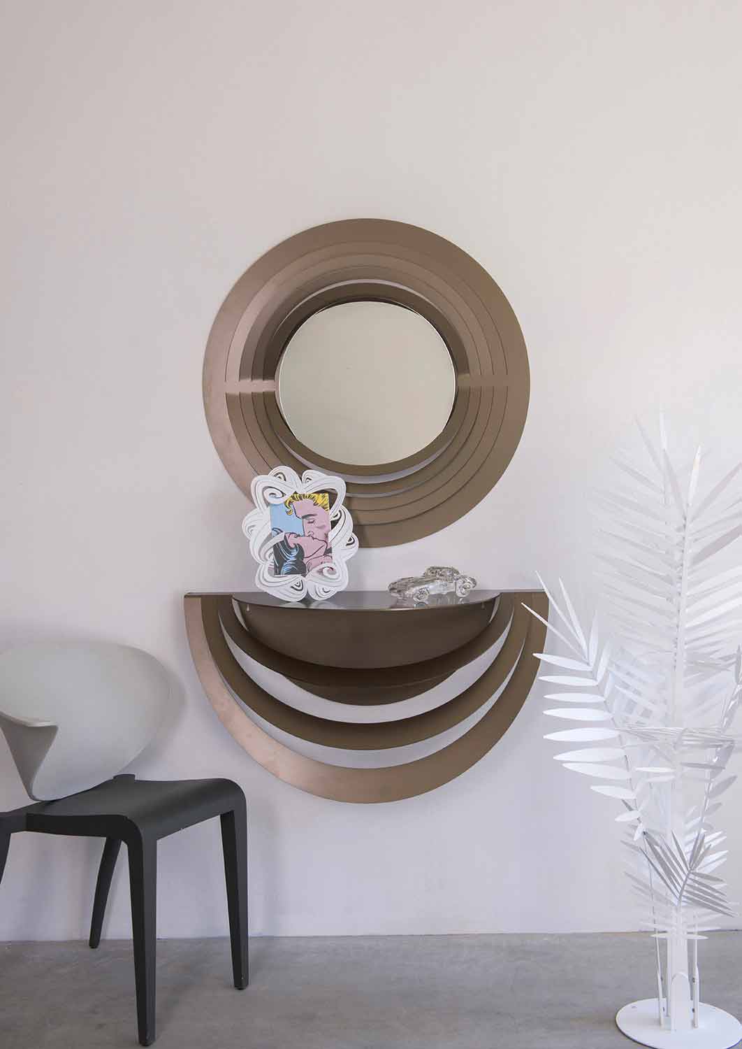Der runde Oregano- Wandspiegel wird von italienischen Eisenhandwerkern von Hand gefertigt und ist in verschiedenen Farben erhältlich:
