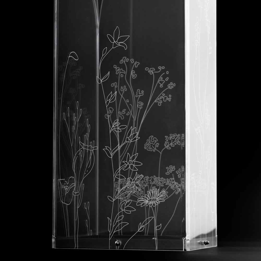 Plexiglas-Regenschirmständern taucht mit zarten, lasermarkierten Details in die Natur ein und sorgt