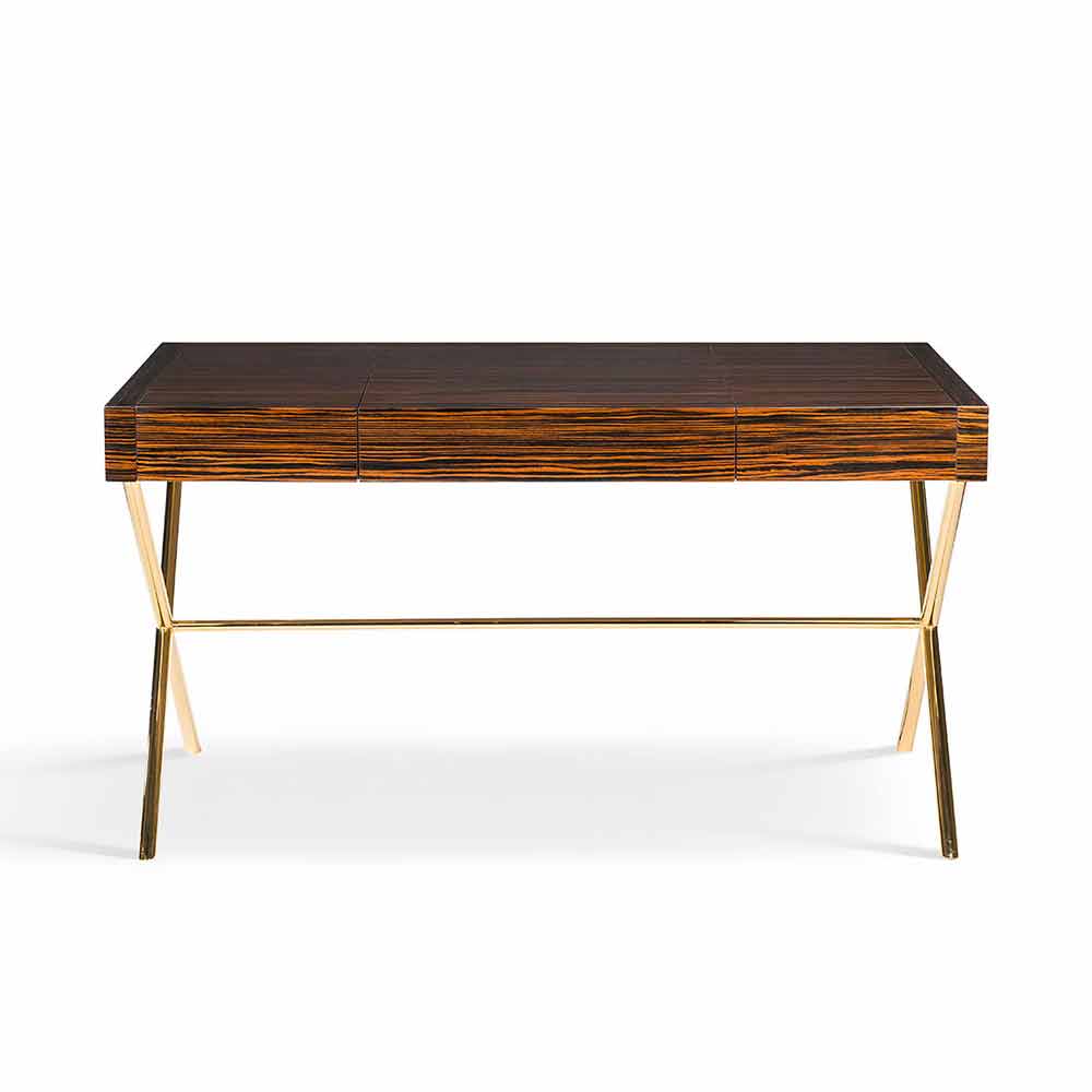 Moderner Schminktisch Ada 3 mit zu öffnender Platte aus glänzendem Ebenholz.