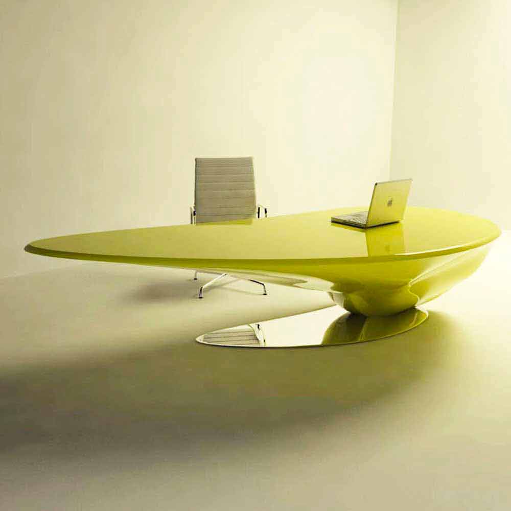 Dieser schöne Schreibtisch zeichnet sich durch Eleganz und Design sowie durch die Form und Innovation der verwendeten Materialien aus.