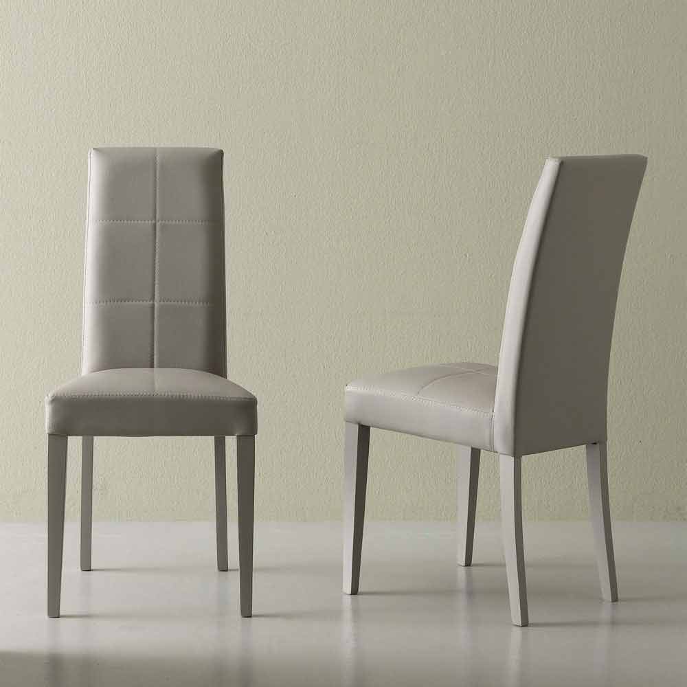 Die Stühle haben ein Holzgestell und sind mit grauem Kunstleder bezogen.