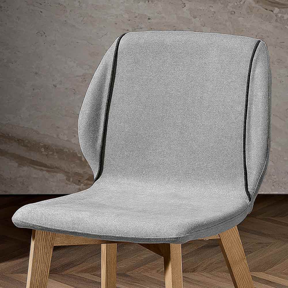 Verwandeln Sie Ihr Esszimmer in einen komfortableren und eleganteren Raum mit dem modernen Monocoque-Stuhl mit Sitzfläche aus farbigem, wasserabweisendem Stoff mit Paspelierung, erhältlich in verschiedenen Farbvarianten: