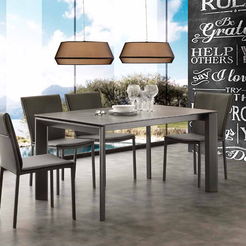 Moderner ausziehbarer Tisch mit Glasplatte aus Filadelfia-Keramik