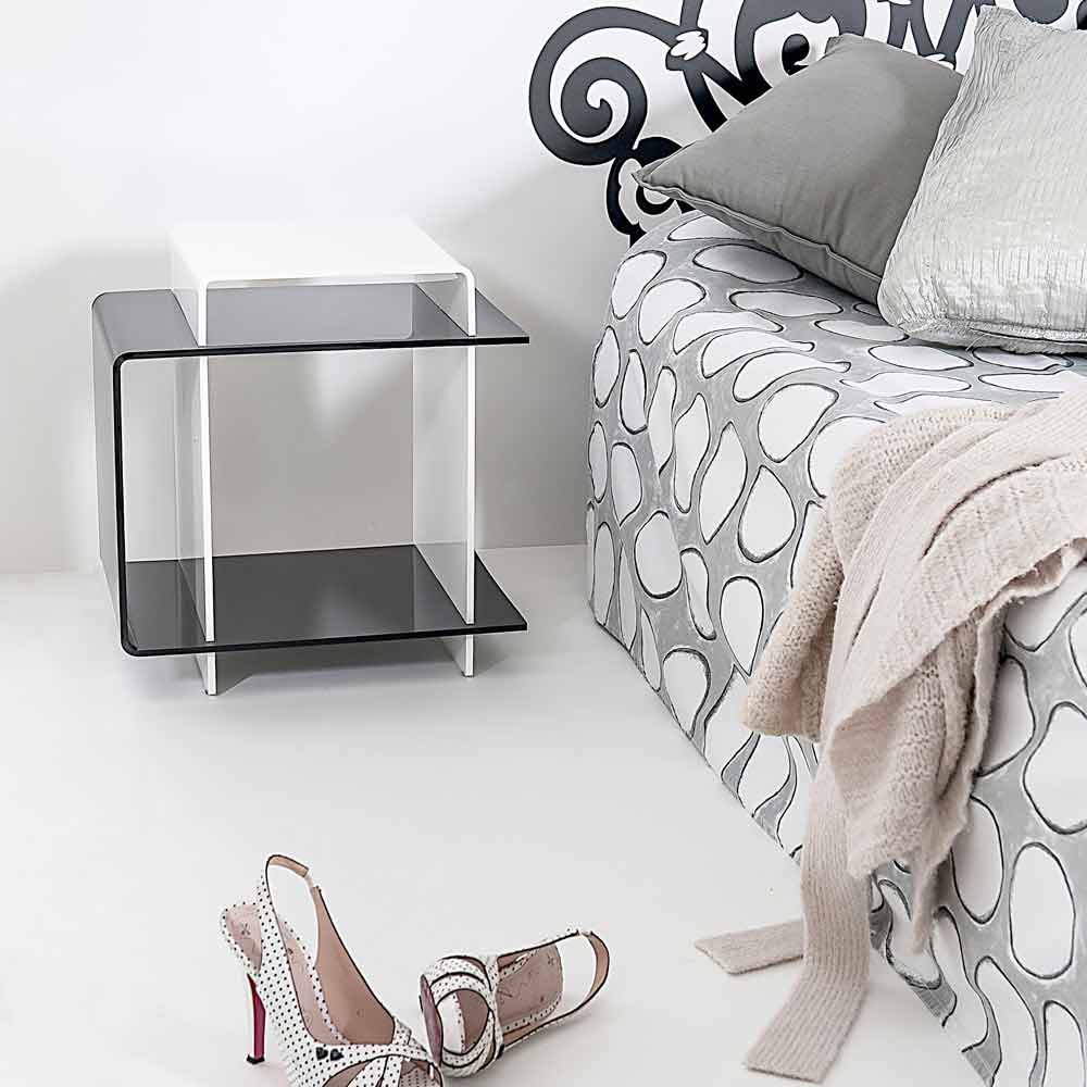 Moderner Tisch mit 3 Regalen schwarz und weiß Gosto made in Italy Vielseitiger 3-lagiger weiß / schwarzer Tisch / Nachttisch, inspiriert von den Geometrien und Bi-Farben der 70er Jahre, aus 100% reinem Polymer-Plexiglas, lasergeschnitten und bei hohen Temperaturen gebogen. Die wichtige Dicke macht die Struktur völlig selbsttragend. Plexiglas ist stoßfest, nicht verformbar, unveränderbar und wärmeisolierend. Die Helligkeit und Helligkeit werden über die Zeit konstant und unverändert beibehalten. Das PMMA Plexiglas aus reinem Polymer ist ungiftig, hypoallergen, geruchlos und antibakteriell. 100% recycelbar. Entworfen, entworfen und hergestellt in Italien, mit italienischen Materialien.