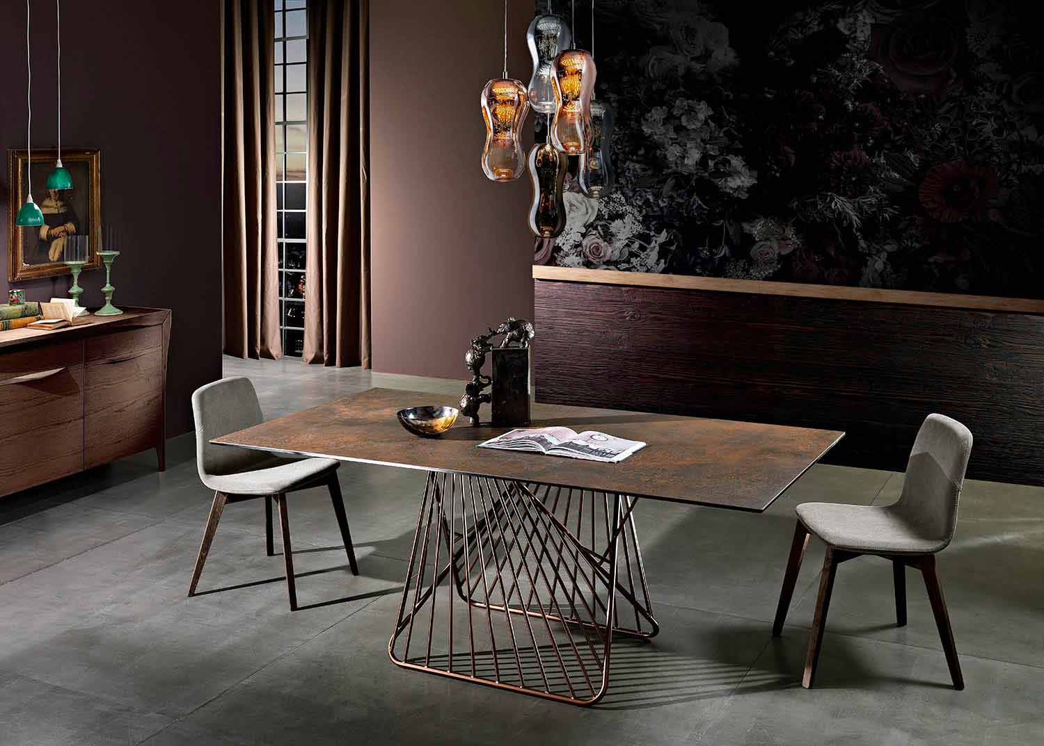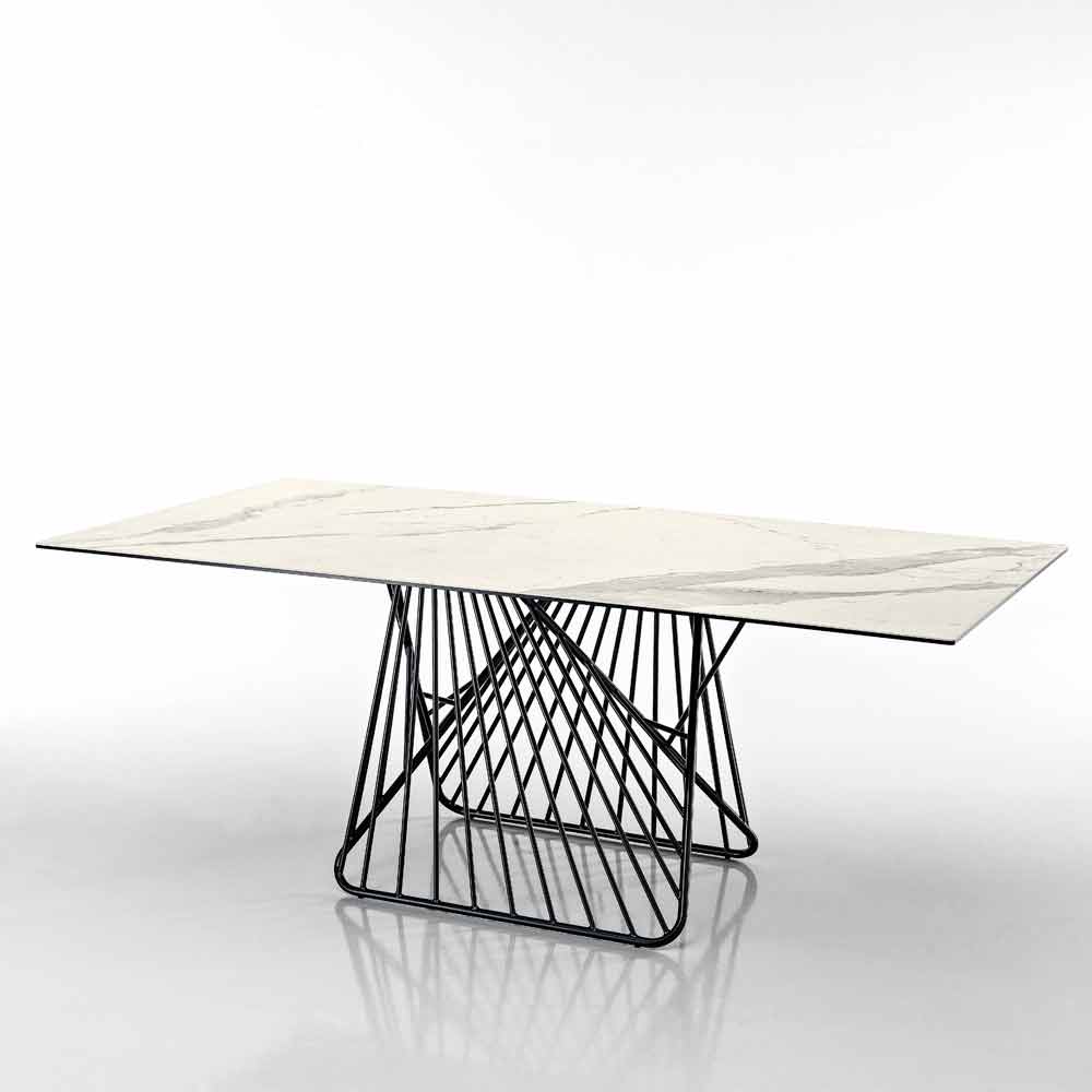 Mitia ist ein fester Tisch aus Italien mit lackiertem Metallgestell und glaskeramischer Oberfläche .