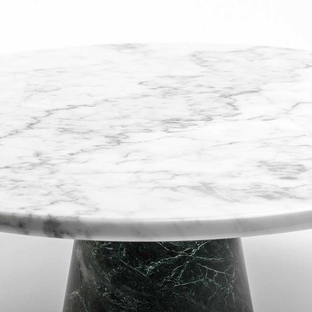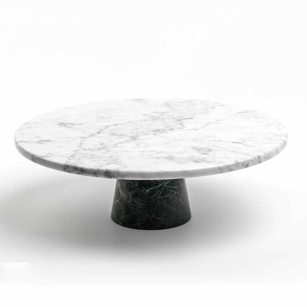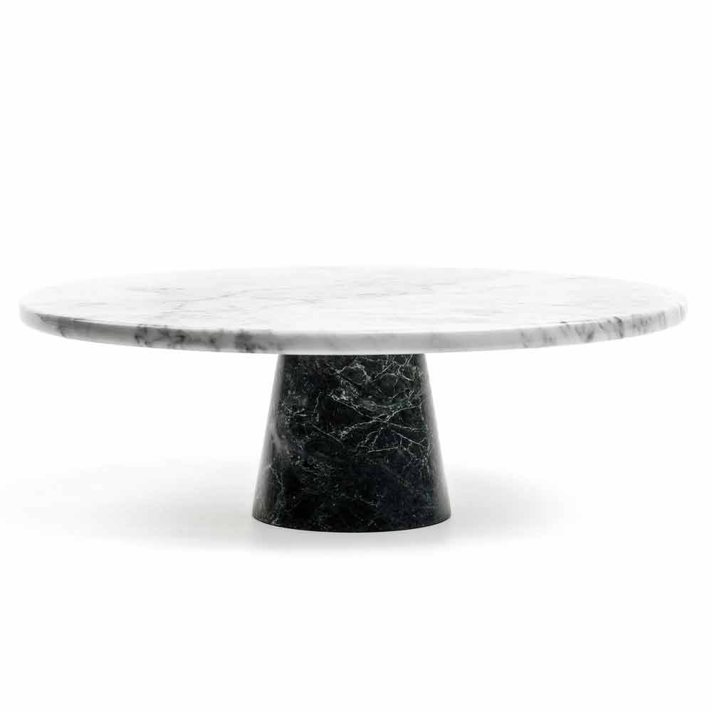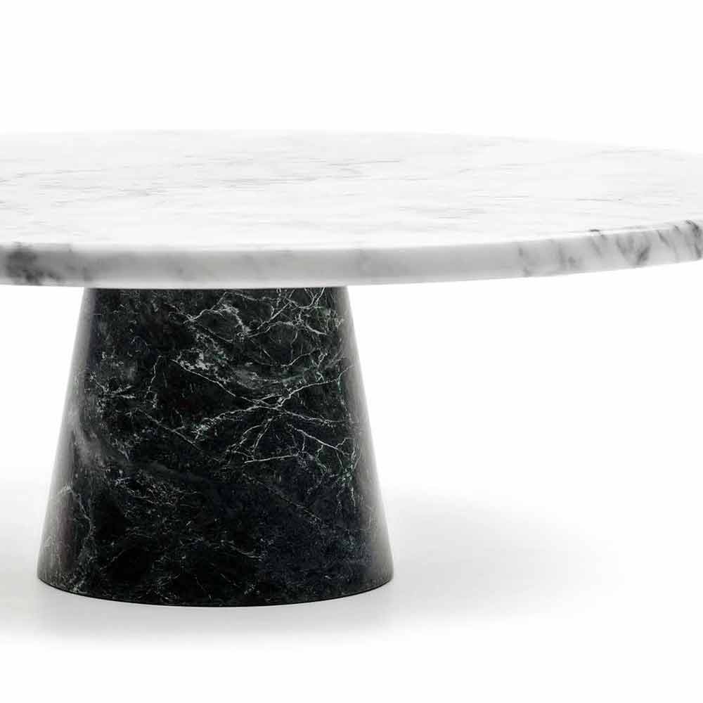 Eleganter moderner Tortenständer mit weißer Carrara- Marmorplatte und schwarzem Marquinia- Marmorsockel. Hergestellt aus hochwertigem feinem Marmor. Es ist ein Unikat, da sich jeder verwendete Marmorblock von den anderen für Adern und Schattierungen unterscheidet.