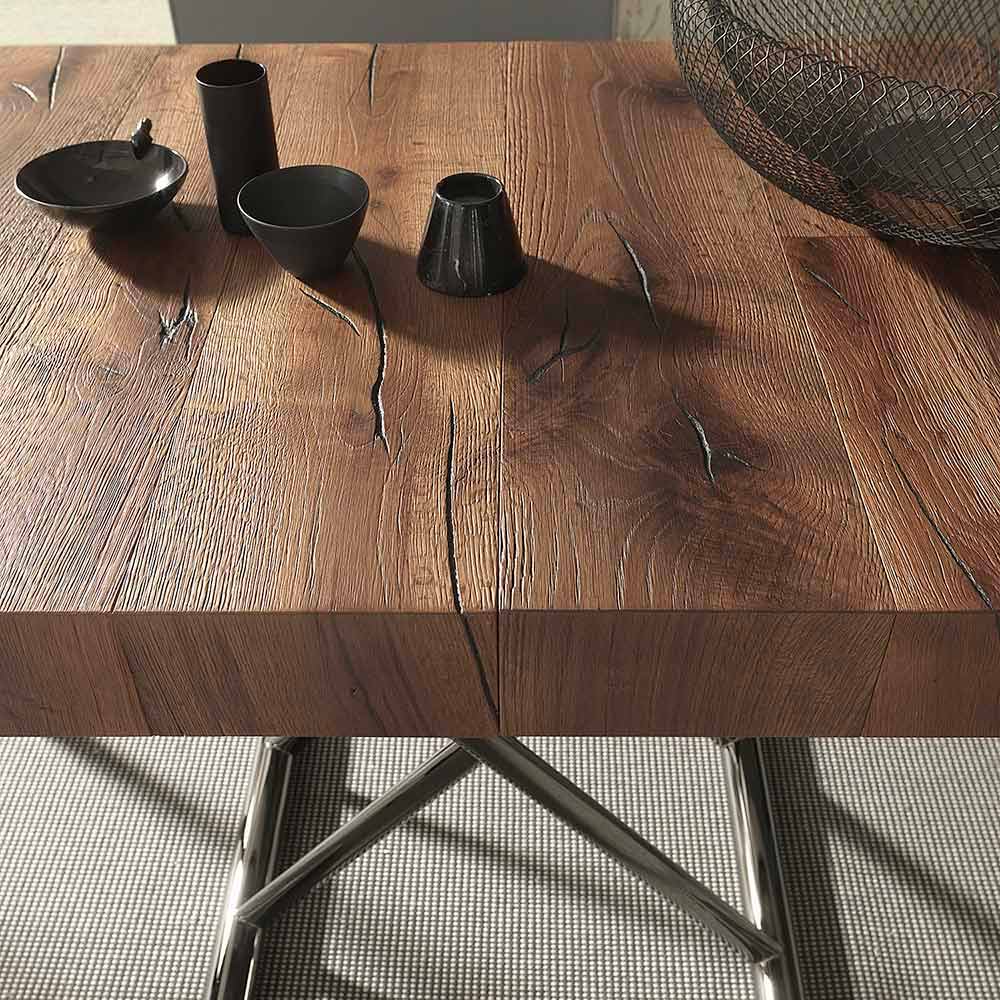 Moderner umwandelbarer Couchtisch aus Holz und Metall, Made in Italy - Spirit