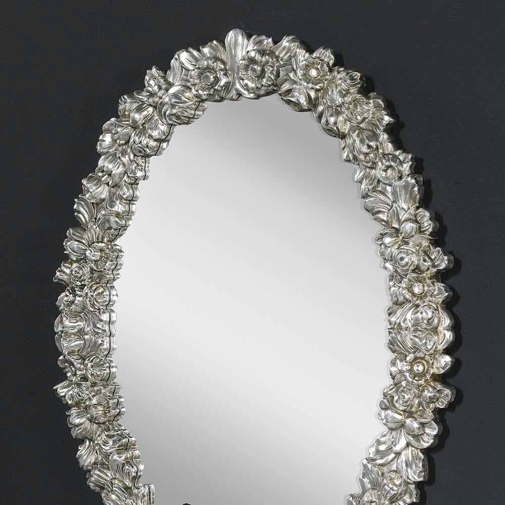 Das organische, fließende Design der geprägten Blumen erzeugt einen dreidimensionalen Rand um den Spiegel , der das Licht einfängt und Details mit außergewöhnlicher Lebendigkeit reflektiert. Dieser Schminktisch ist nicht nur ein praktisches Objekt, sondern ein Kunstwerk, das jedem Raum, vom eleganten Wohnzimmer bis zum anspruchsvollen Schlafzimmer, eine skulpturale Dimension und einen Blickfang der Schönheit verleiht.