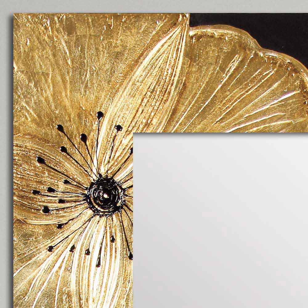 Der Spiegel kann horizontal oder vertikal aufgehängt werden. Mit Blattgold und Blattsilber bearbeitet.