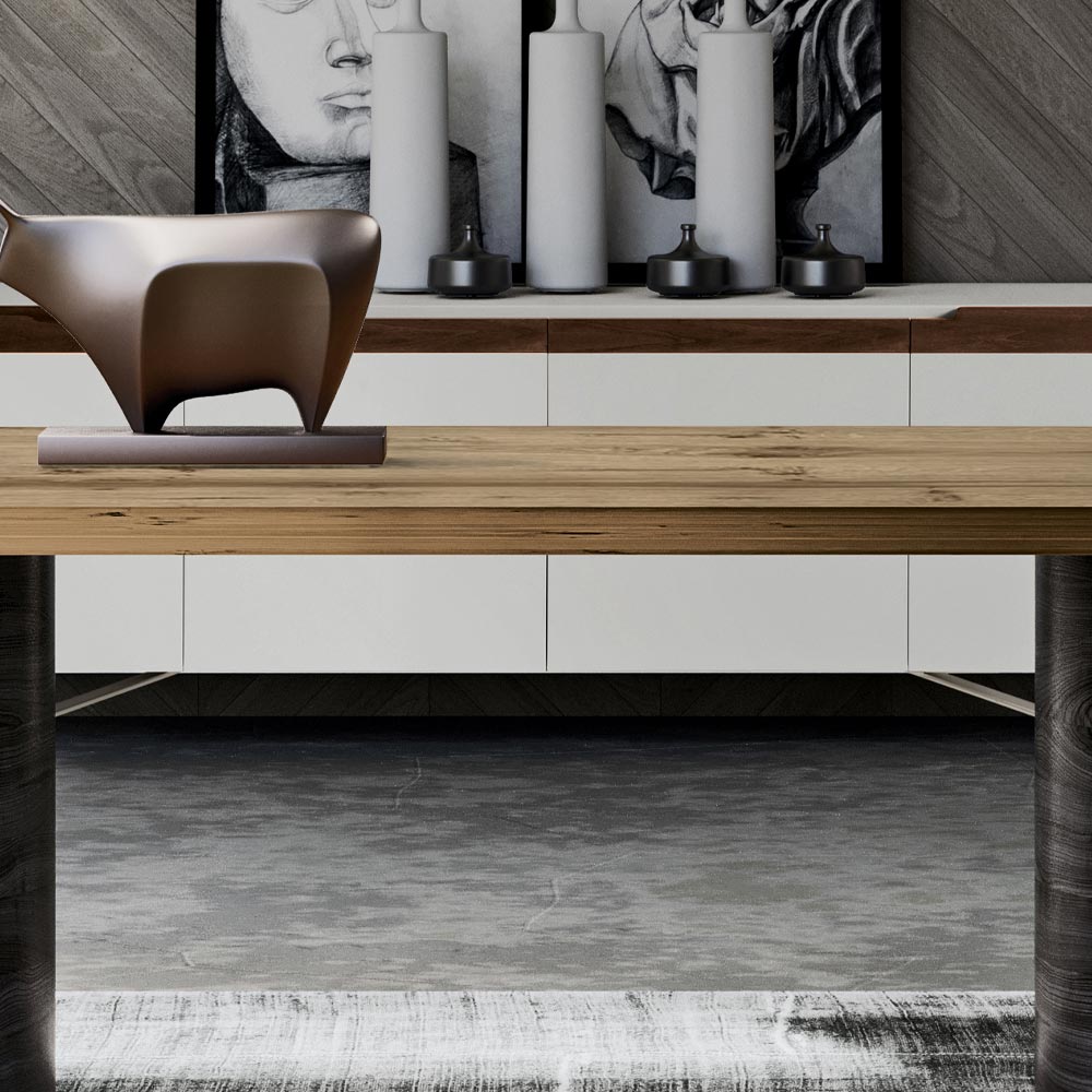 Fester Tisch mit Holzplatte und Beinen, hergestellt in Italien