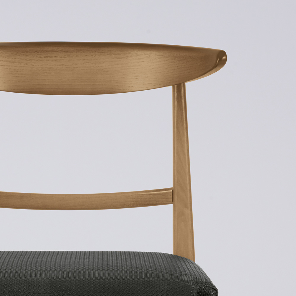 Stoffbezug in der Farbe MX 18 . Was diesen Stuhl auszeichnet und einzigartig macht, sind die