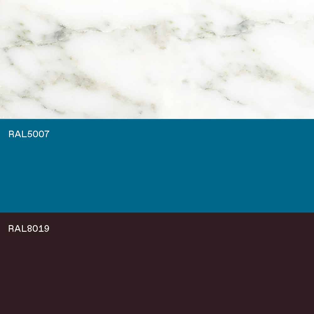 Ausführung : Kaffee RAL8019 + Kreuz in Hellblau RAL5007 + Platte aus weißem Michelangelo-Marmor