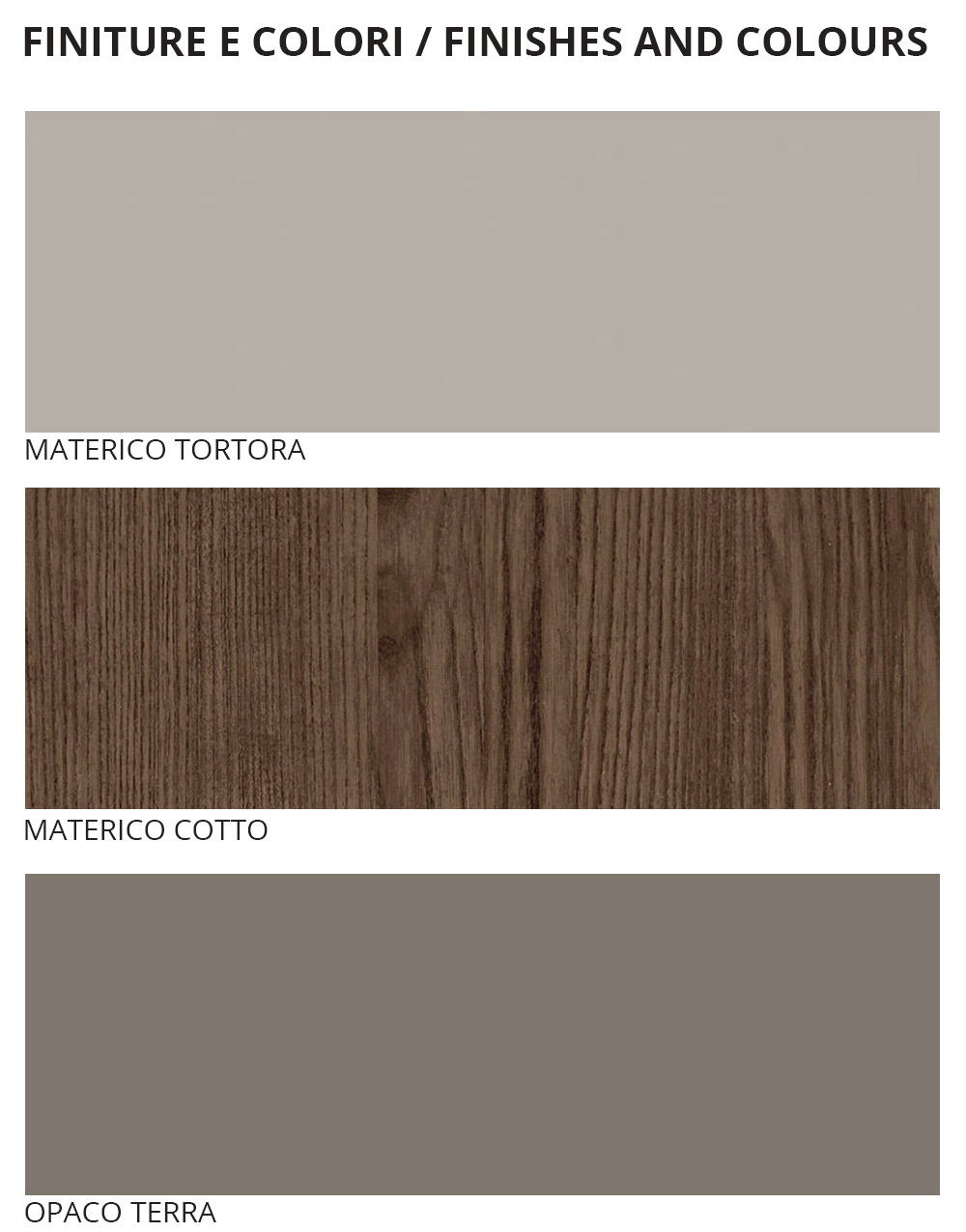Doppelschlafzimmermöbel bestehend aus 5 Elementen komplett in Italien hergestellt . Die Komposition umfasst ein Doppelbett mit Bettrahmen und Kopfteil aus taubengrauem Strukturholz, einen Nachttisch mit 2 Schubladen, 2 Nachttische mit 1 Schublade und eine hohe Kommode mit 5 Schubladen (bestehend aus 5 modularen Elementen) in Terracotta, Strukturholz Taubengrau und Lack Terra matt. Möbel mit einer Idee, die scheinbar auf Einfachheit basiert, sich aber ein sorgfältiges Studium von Proportionen und Volumen verbirgt. Das Bett zeichnet sich durch eine raffinierte minimalistische Struktur aus, die perfekt zu den umgebenden Elementen passt und Ihnen dank eines modularen Systems die volle Freiheit lässt, Ihren Schlafbereich für optimalen Komfort an unterschiedliche Bedürfnisse und Lebensstile anzupassen.