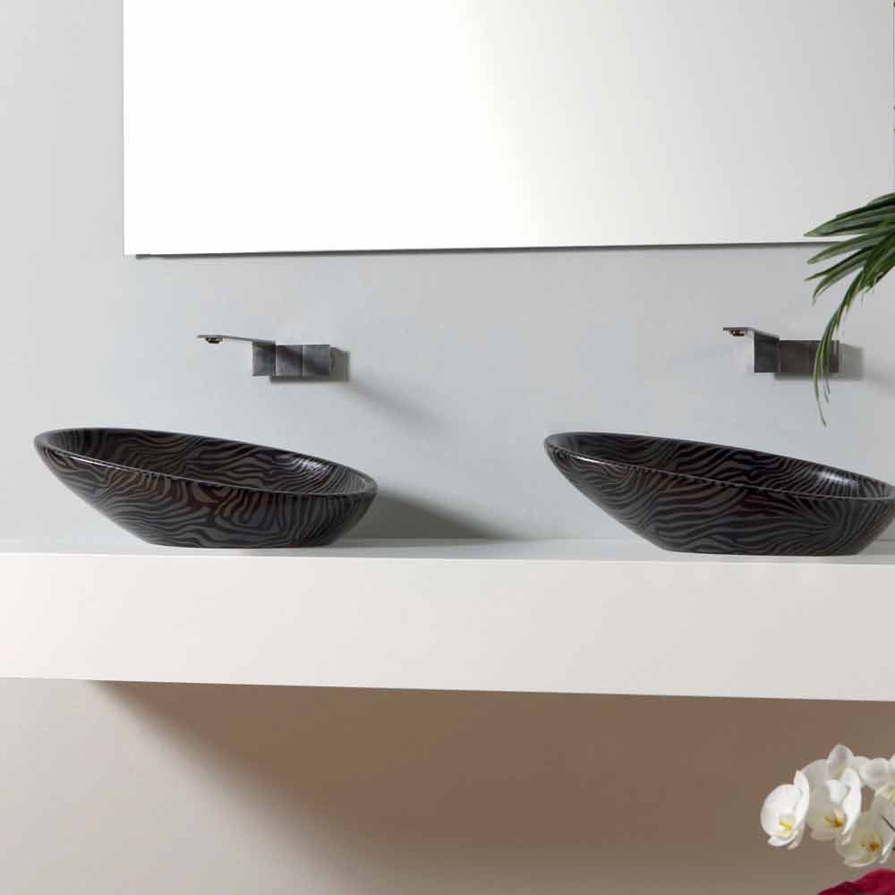 Modernes Aufsatzwaschbecken aus glänzender silberner Zebra-Keramik made in Italy
