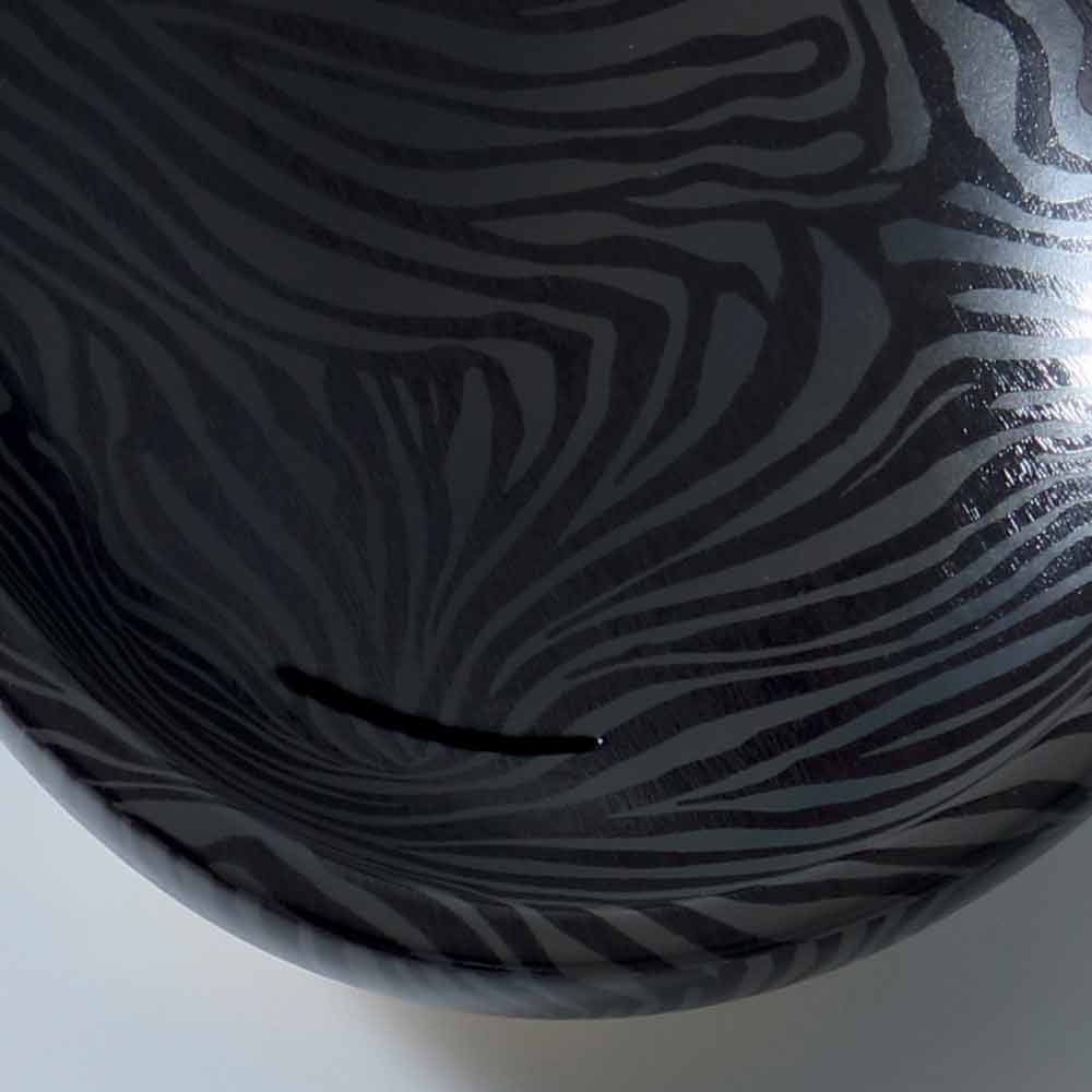 Glossy ist das in Italien von Meisterhand gefertigte Aufsatzwaschbecken aus Keramik mit silbernem Zebrafinish.