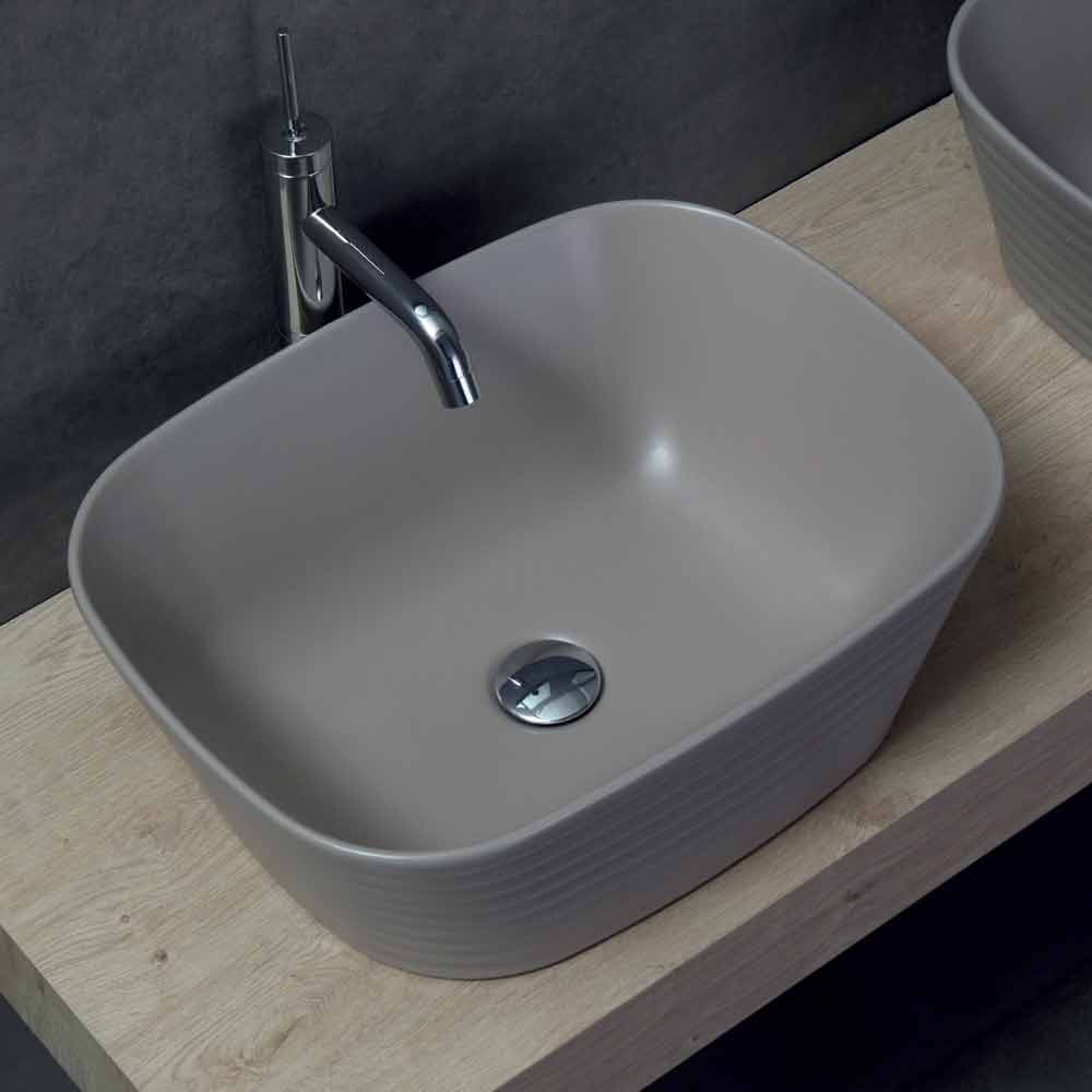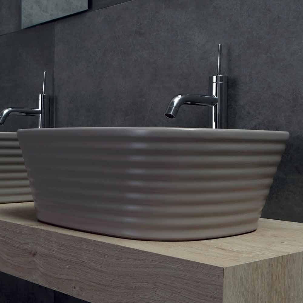 Das Aufsatzwaschbecken Trabia ist in der Lage, die Oberfläche oder die Möbel, auf die es gestellt wird, zu bewerten. Sein Design ist einfach, aber mit viel Liebe zum Detail. Dank des Materials, aus dem es besteht, dem glasartigen Porzellan, kann es verwendet werden, ohne die Oberfläche zu beschädigen . Dieses Material ist eine Art glasierte Keramik, die bei 1200 ° C gegart wurde und beständig gegen Säure, Hitze, Stöße und Kratzer ist. Es ist hygienisch und leicht zu reinigen und verblasst auch nicht mit der Zeit.