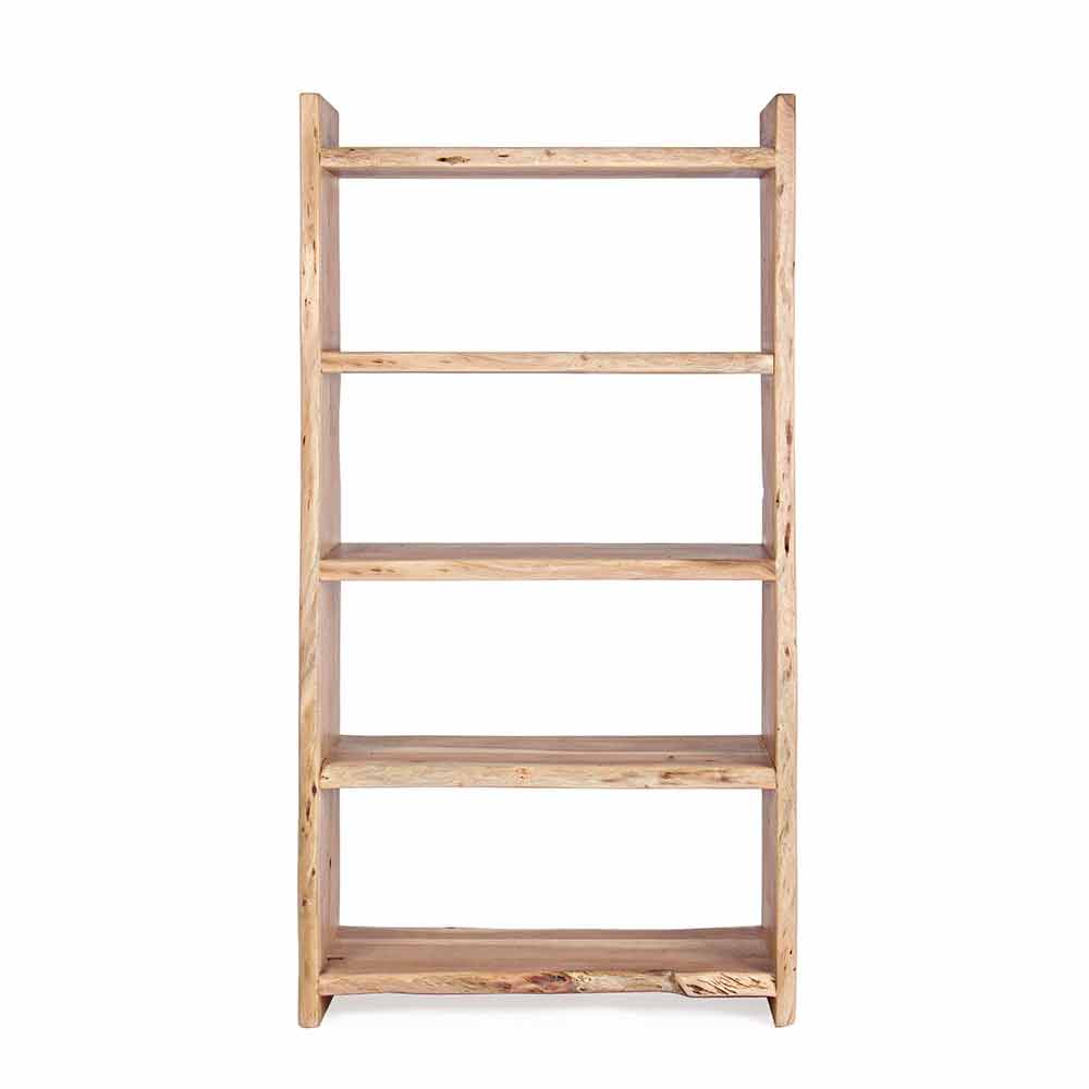 Bücherregal mit Akazienholzstruktur und 5 modernen Designregalen.