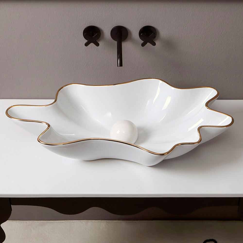 Aufsatzwaschbecken aus weißer Keramik mit goldenem Rand made in Italy Rayan