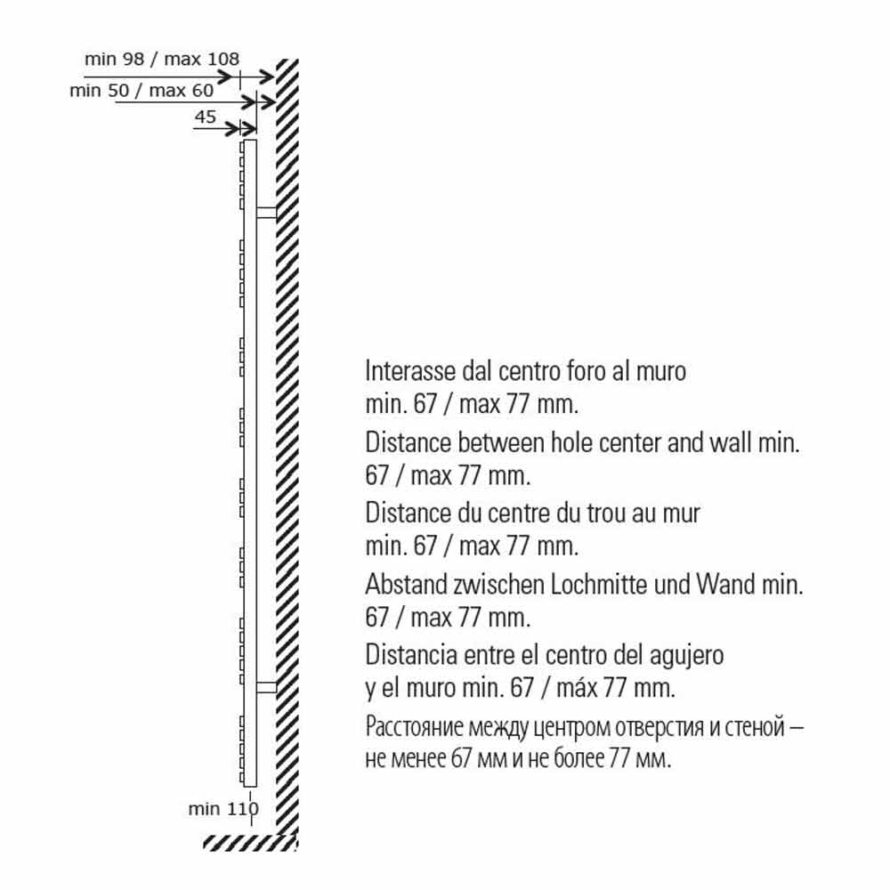Hydraulischer vertikaler Stahlhandtuchwärmer an der Wand, hergestellt in Italien.