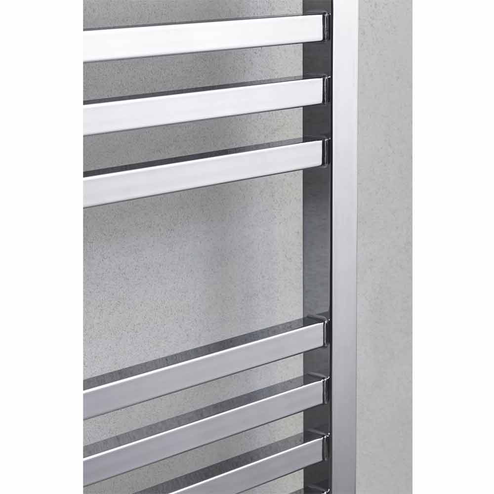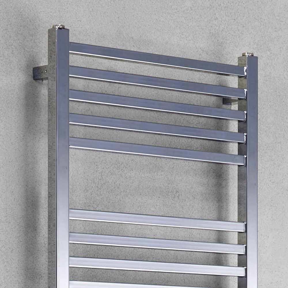 Verchromter quadratischer hydraulischer Handtuchheizkörper aus Stahl, hergestellt in Italien.