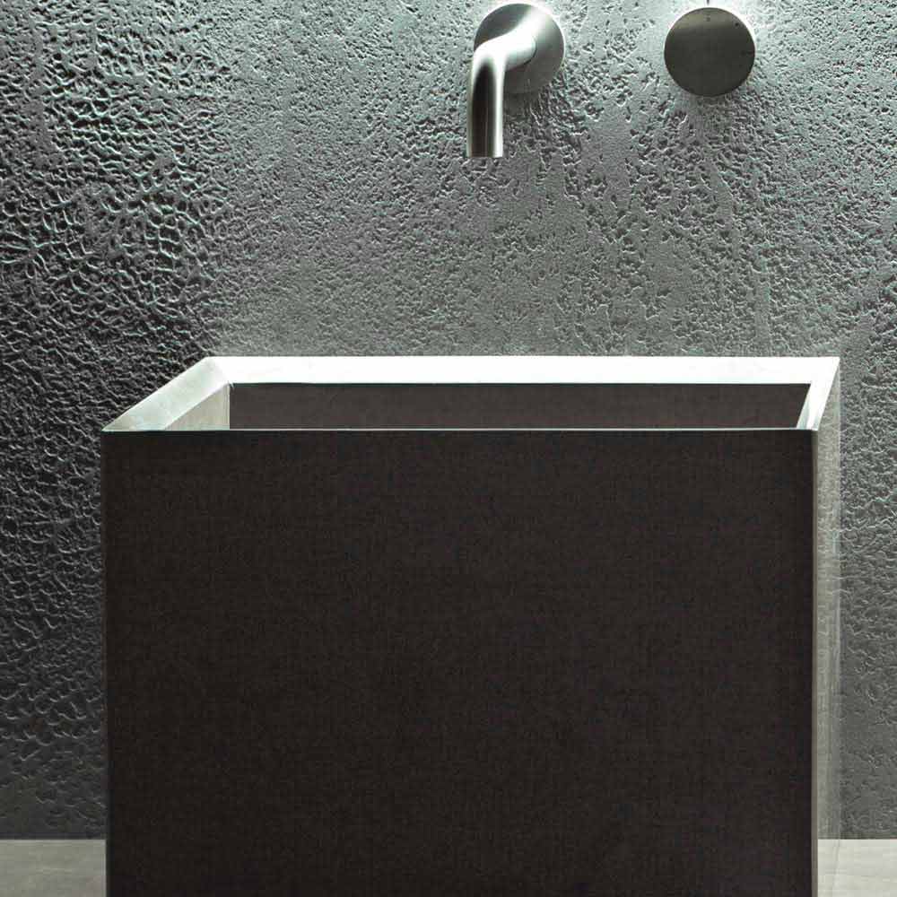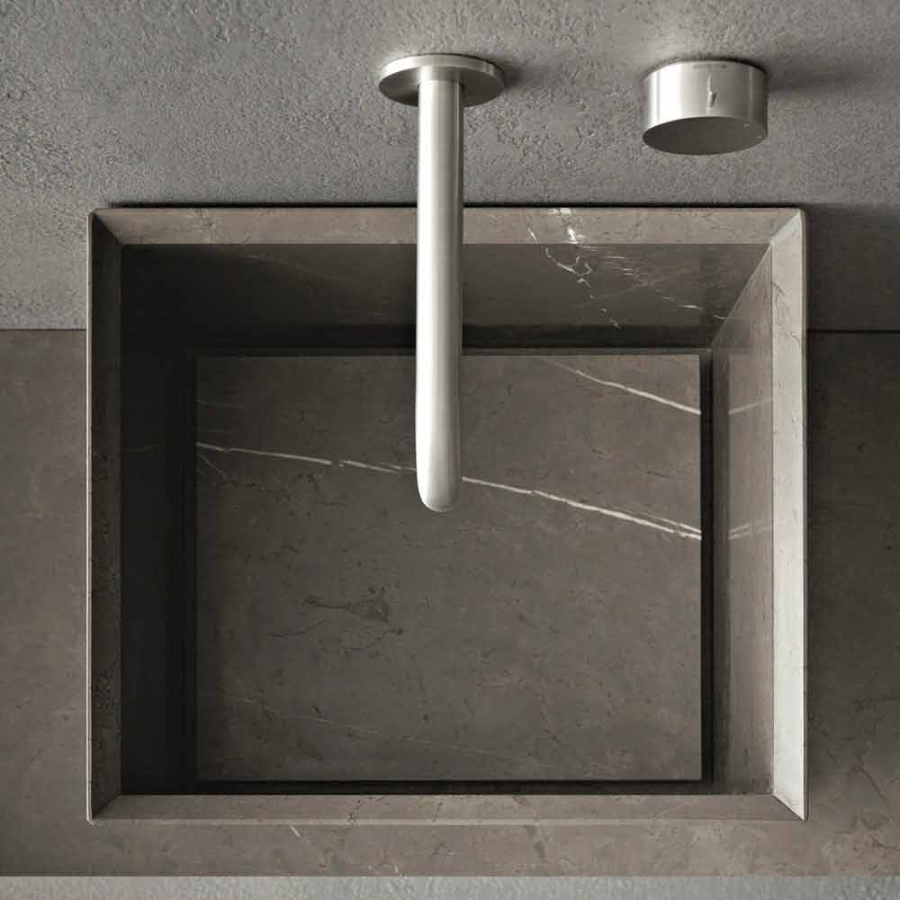 Quadratisches Waschtisch, modernes Design aus Naturstein, mit verstecktem Abfluss.