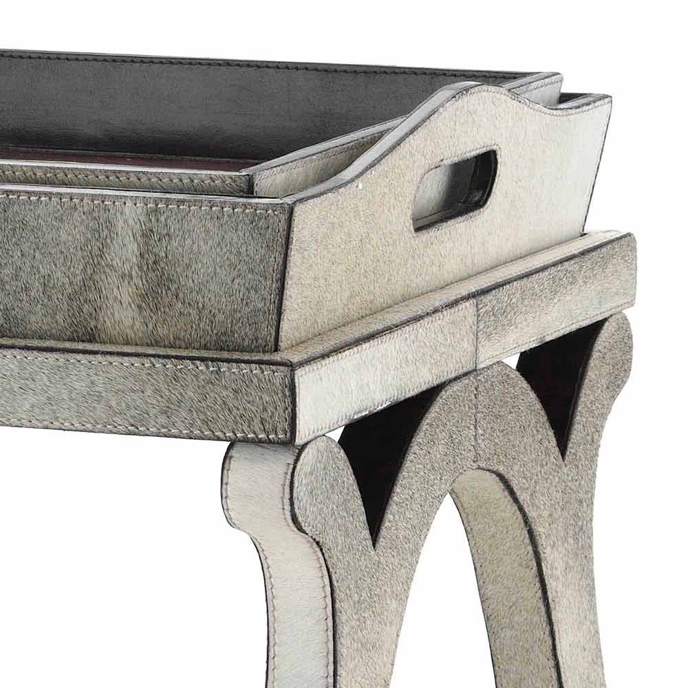 Modernes Design-Konsole mit Tablett in Felicia Grau Pony Leder