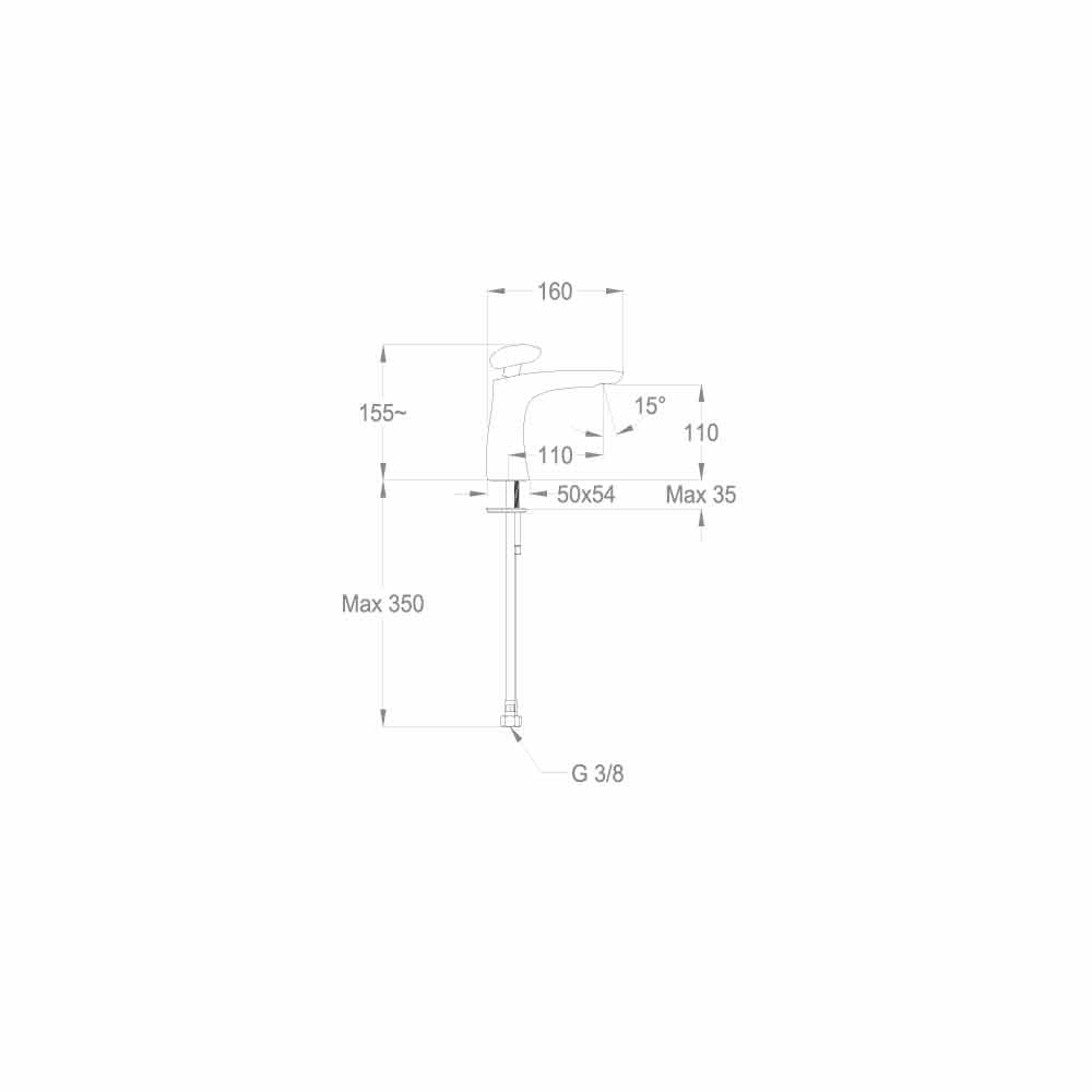 Aufsatzmischer im ultramodernen und avantgardistischen Design mit einer Höhe von 155 mm und einem Achsabstand von 110 mm.