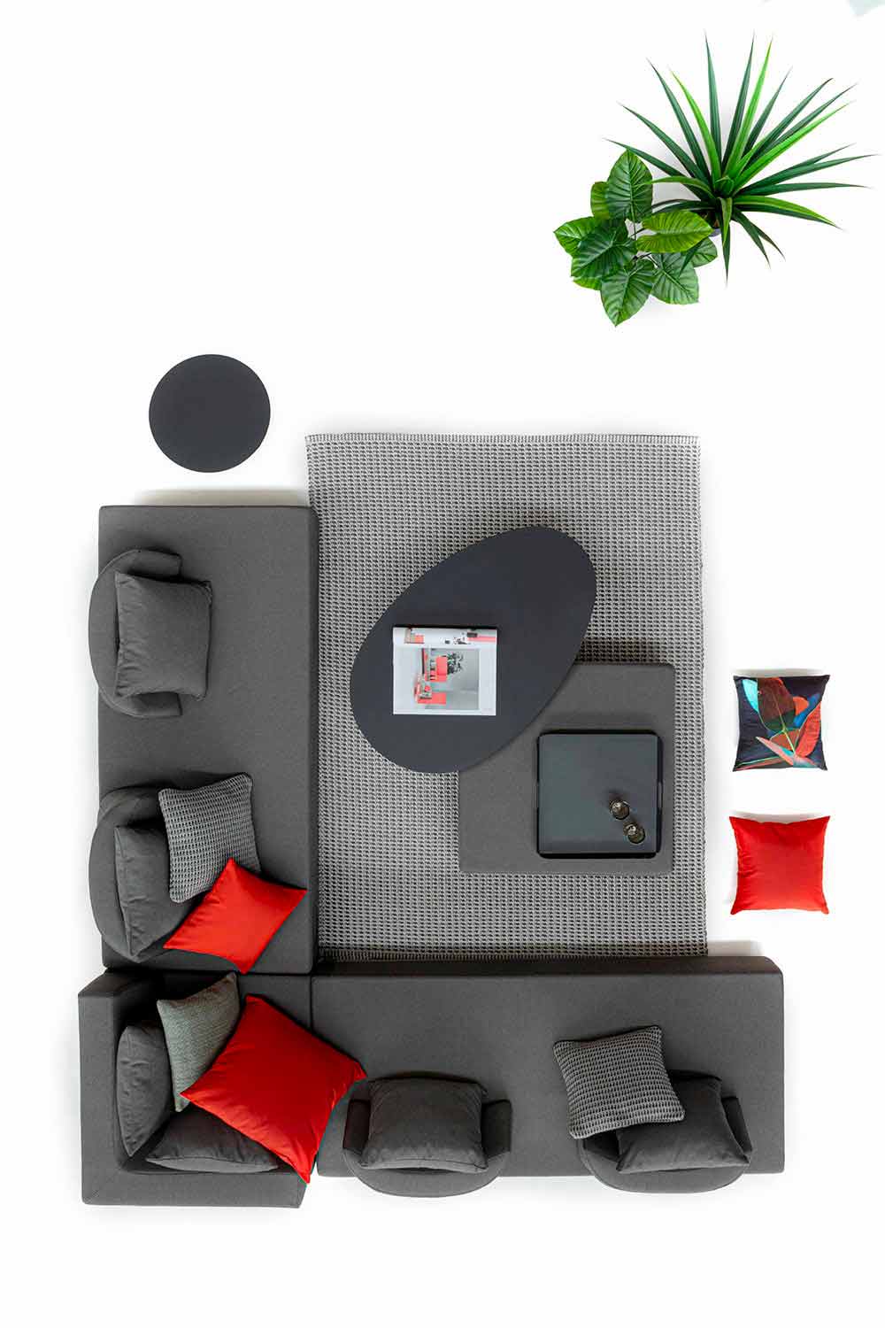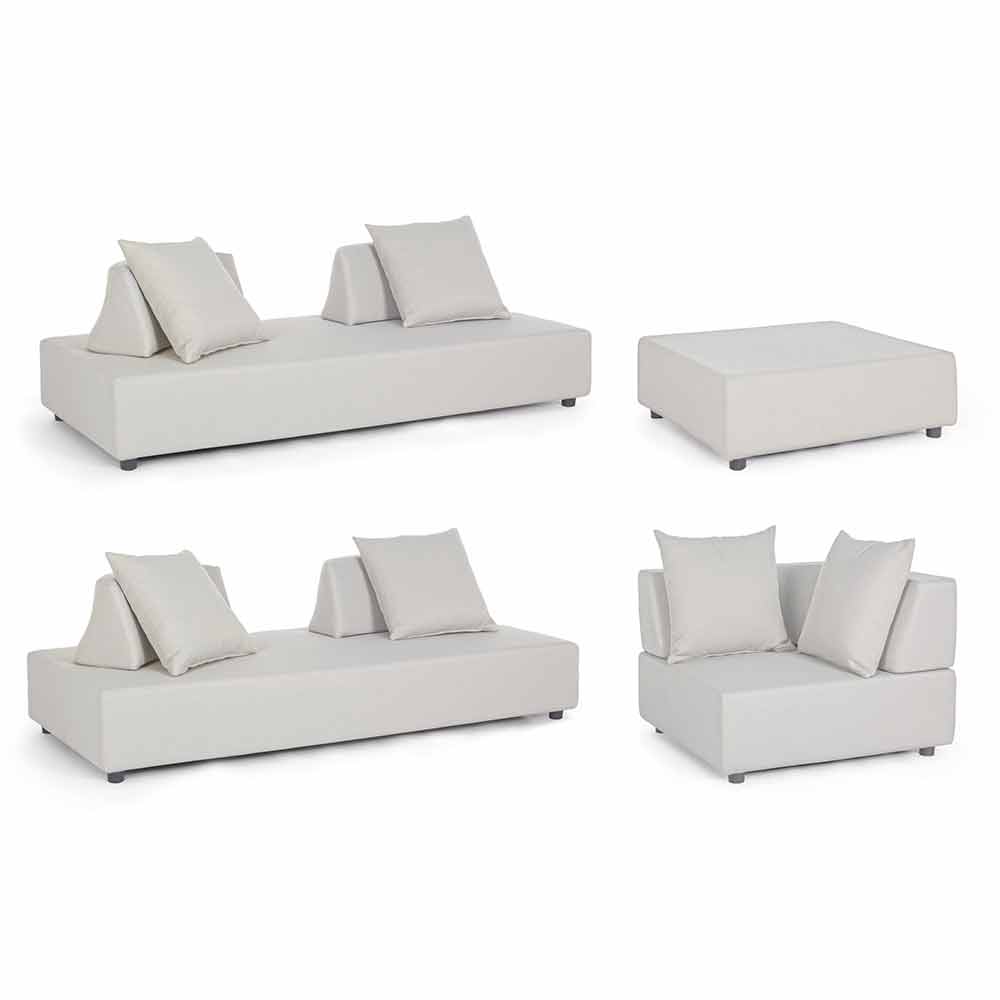 Zusammensetzung von Sofas und Ottomane mit Aluminiumstruktur; Abnehmbare Rückseiten mit Stahlkonstruktion, feuerverzinkt und pulverbeschichtet (Polyester).
