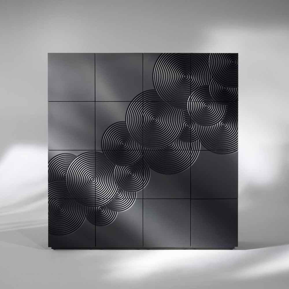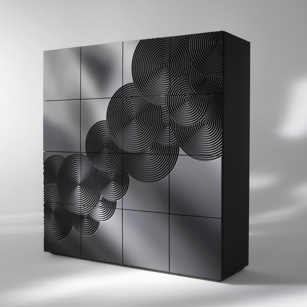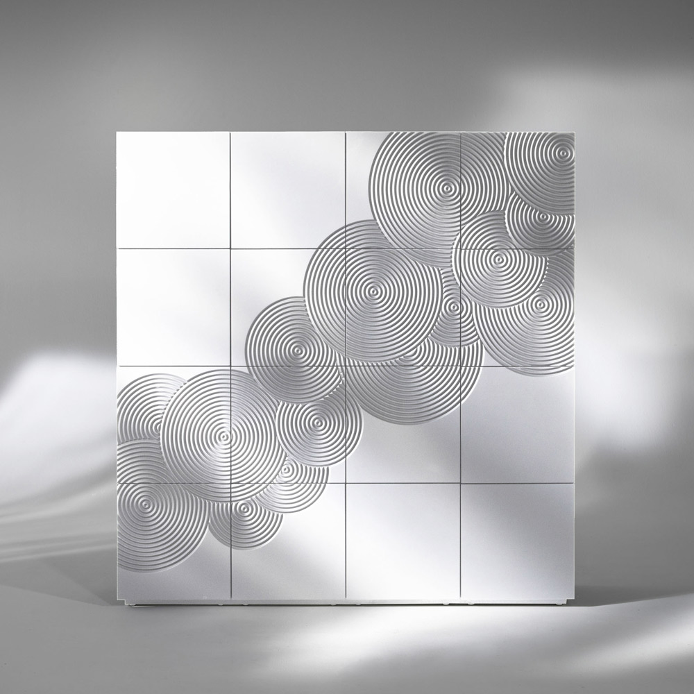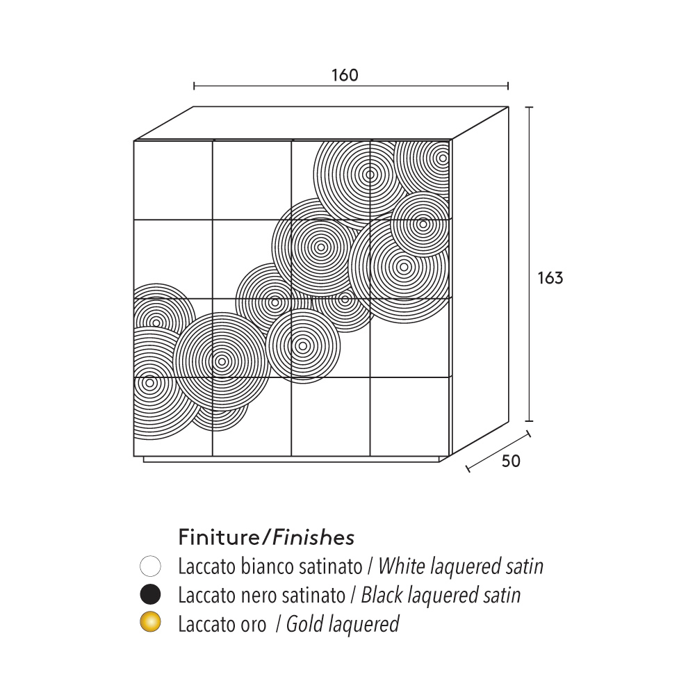 Sideboard mit 8 dekorierten Türen und 4 Innenregalen aus lackiertem MDF, hergestellt in Italien.