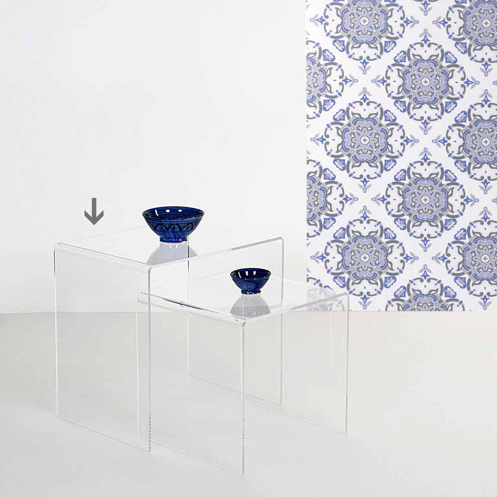 Modernes Design transparenter Tisch 50x50cm Terry Big, made in Italy