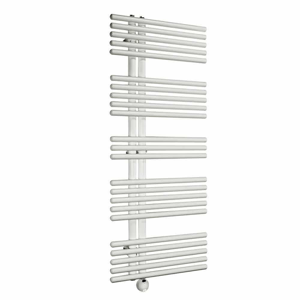 Dieser elektrische Handtuchheizkörper verfügt über ein Design aus vertikalen Rohren mit einem Durchmesser von 35 mm und horizontalen runden Rohren mit einem Durchmesser von 25 mm. Seine moderne und besondere Form macht es ideal für die Dekoration der neuesten Badezimmer mit einem Hauch von Originalität.