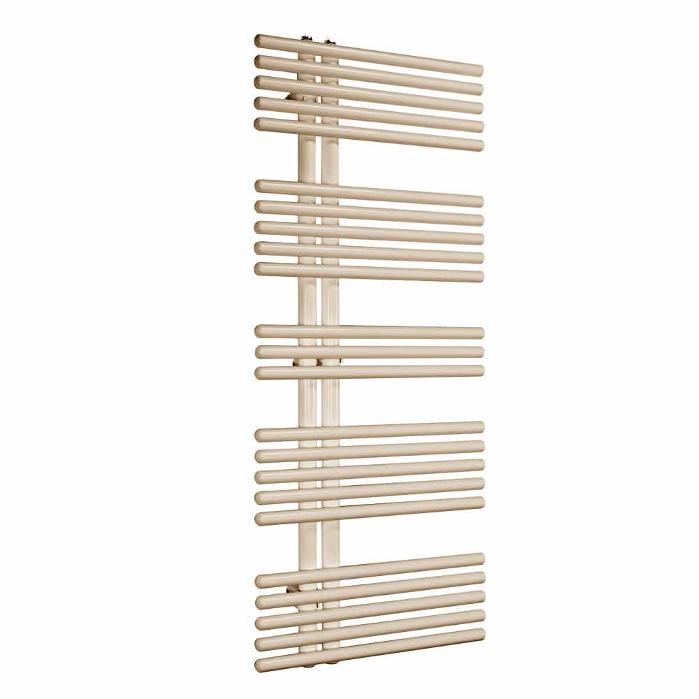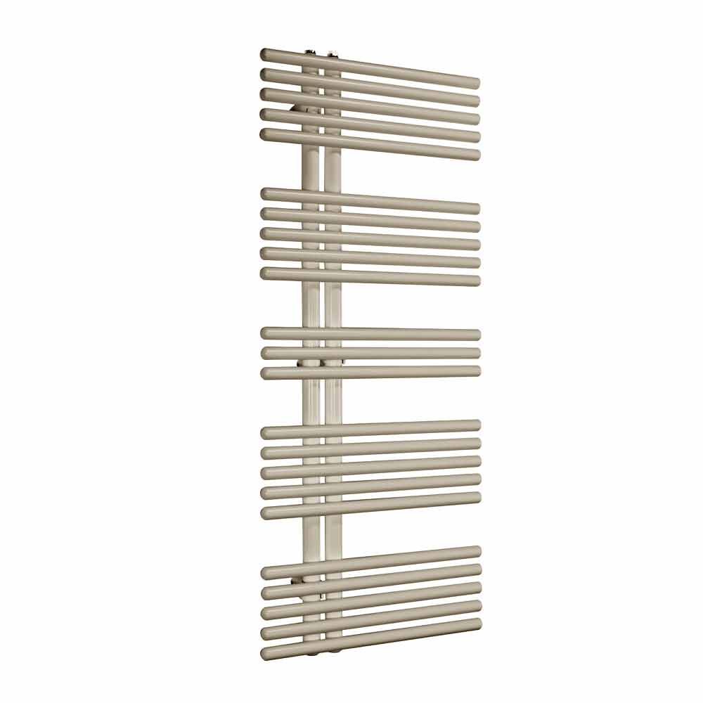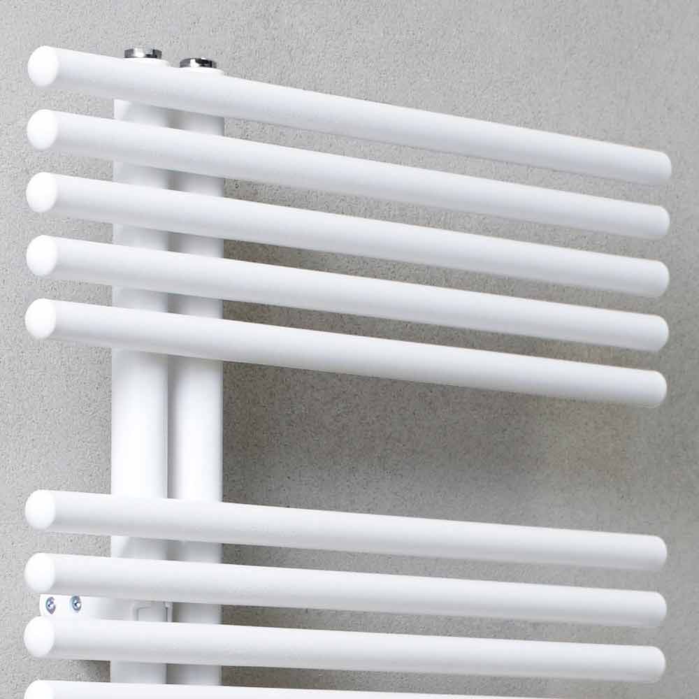 Dieser handtuchwärmende Heizkörper besteht aus vertikalen Rohren mit einem Durchmesser von 35 mm und horizontalen runden Rohren mit einem Durchmesser von 25 mm. Seine moderne und besondere Form macht es reversibel und ideal für die Einrichtung der neuesten Badezimmer, was einen Hauch von Originalität verleiht.