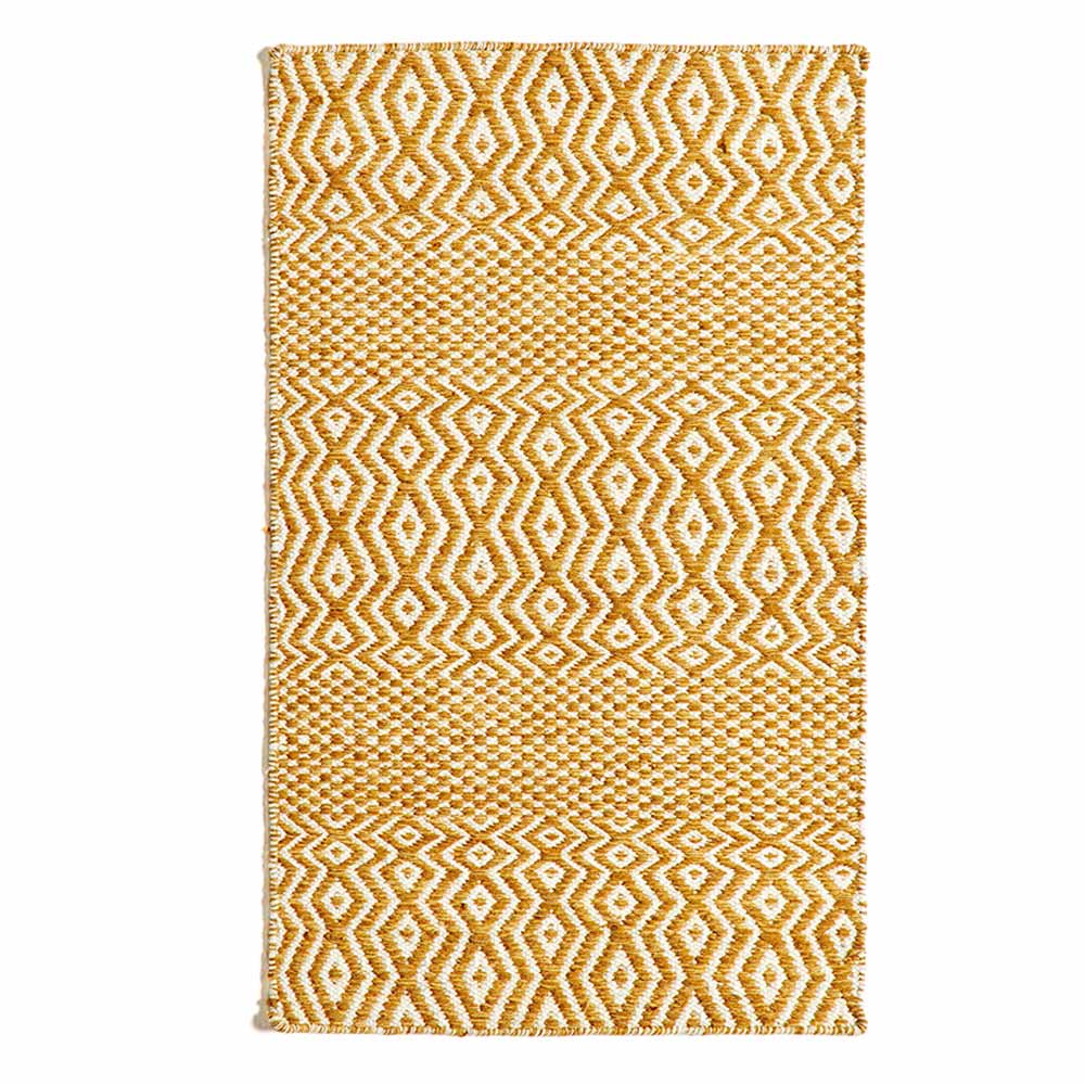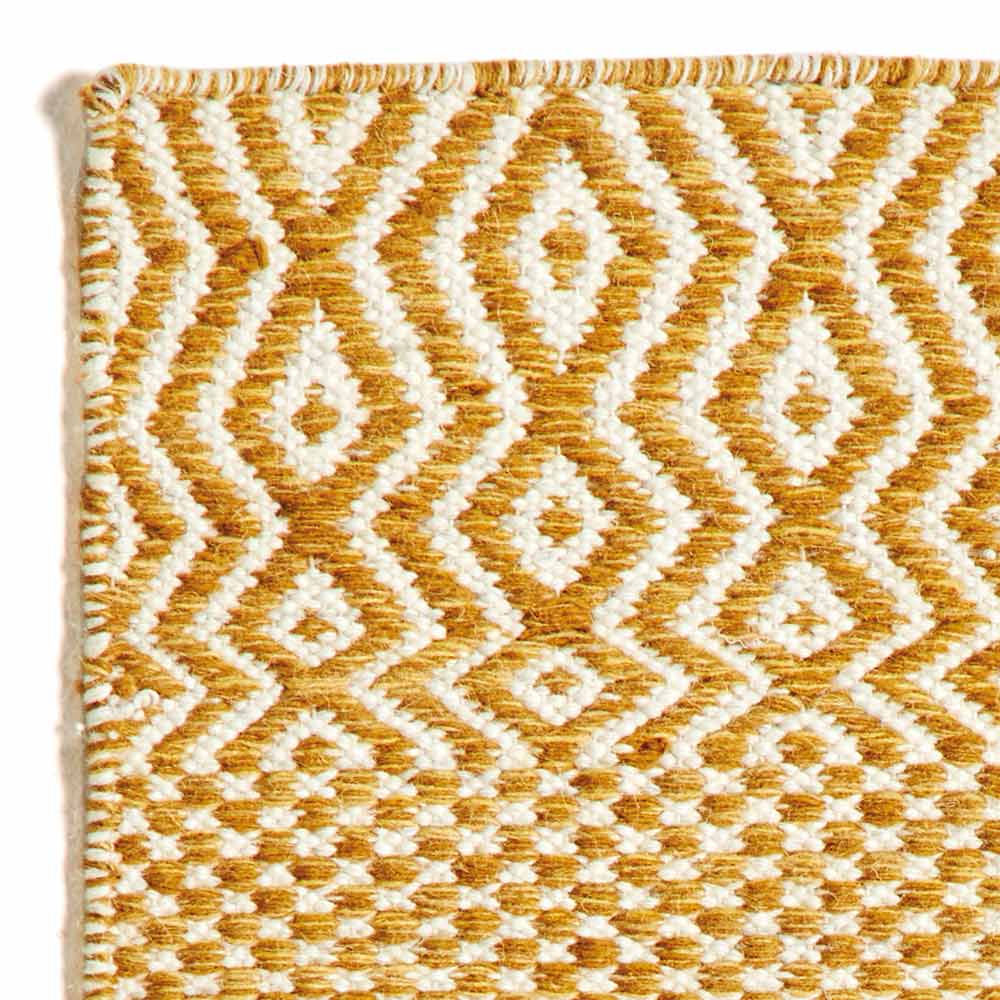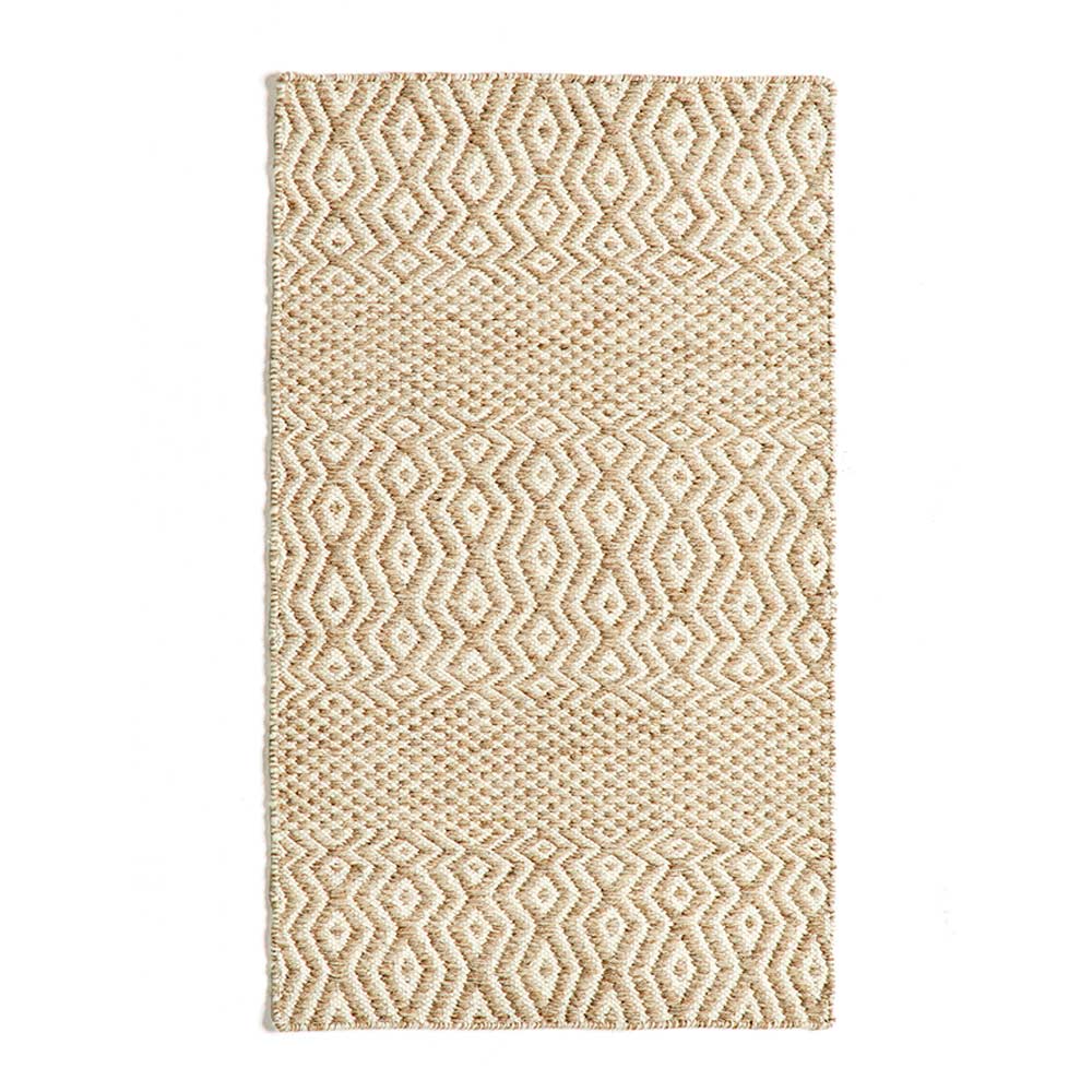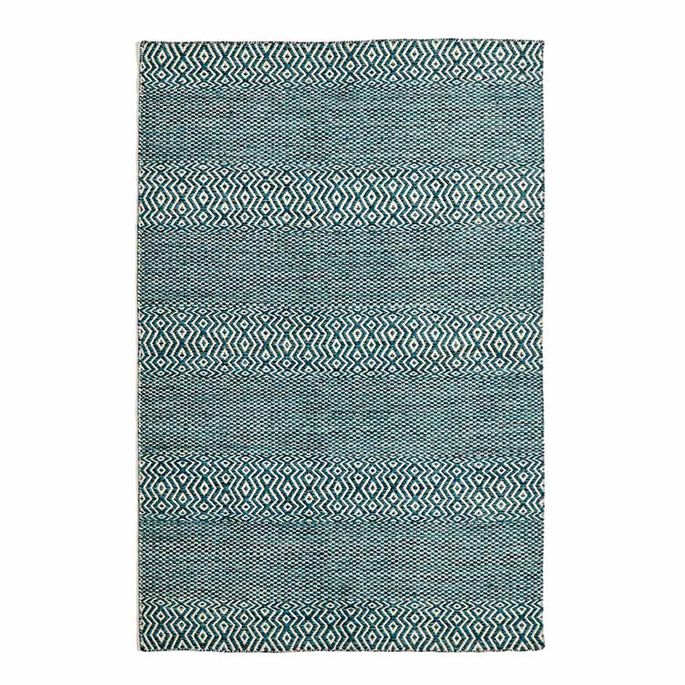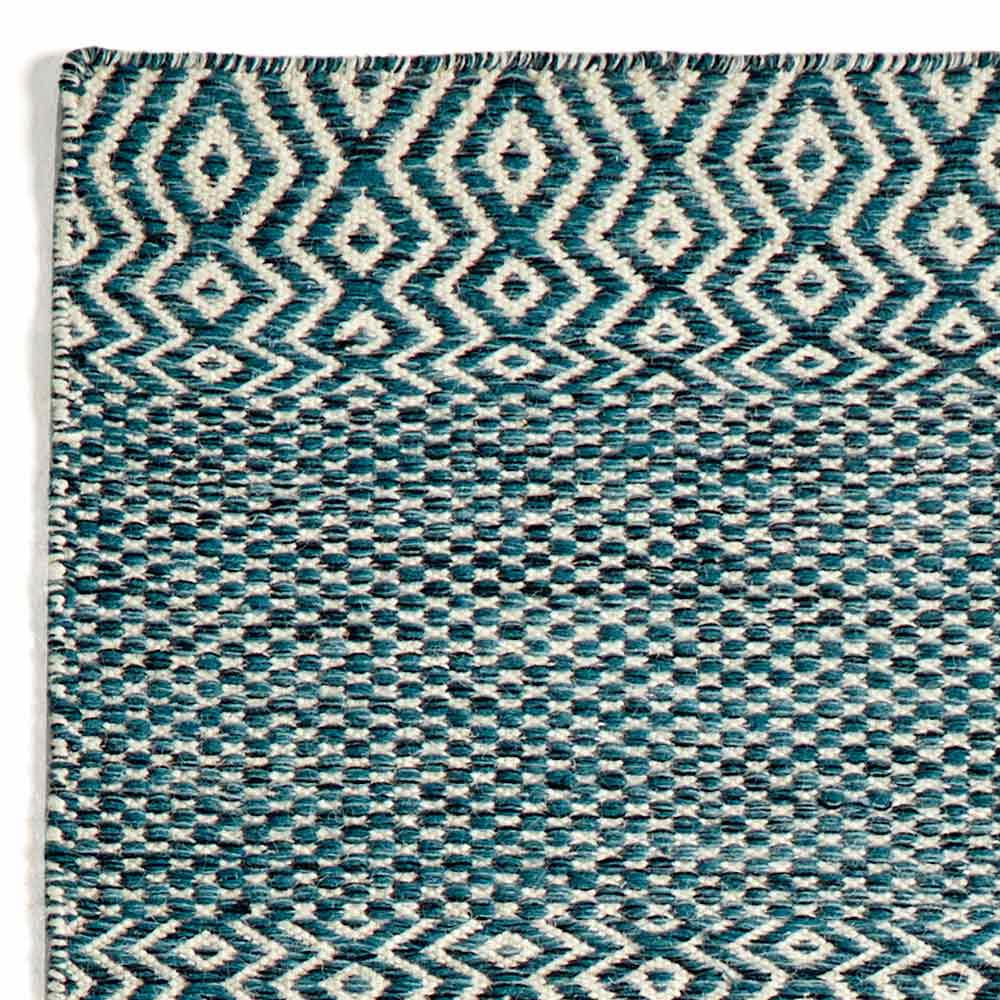 Handgewebter Wohnzimmerteppich aus Wolle und Baumwolle mit gemustertem Design.