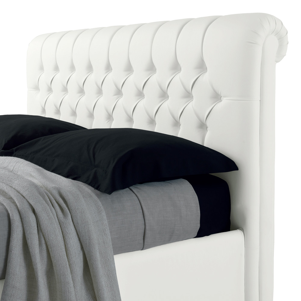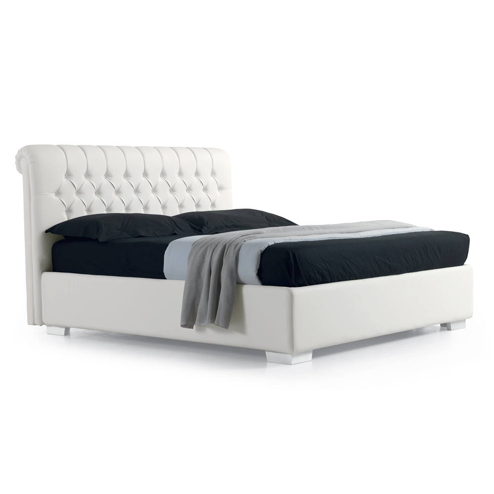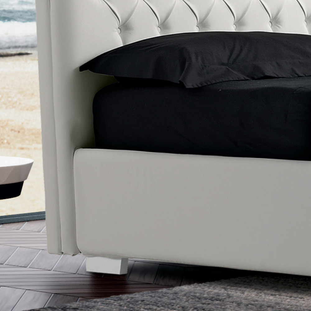 wurde von Polsterermeistern vollständig von Hand gefertigt und ist ein Bett, dessen Capitonnè-Verarbeitung die perfekte Geometrie des rautenförmigen Designs des mit Knöpfen verzierten Kopfteils hervorhebt. Im Inneren befindet sich ein stabiler Rahmen aus Pappelsperrholz mit einer Polsterung aus unverformbarem Polyurethan D30.