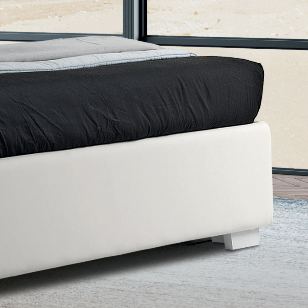 Gepolstertes Doppelbett mit Öko-Leder bezogen, mit Aufbewahrungsbox, hergestellt in Italien.