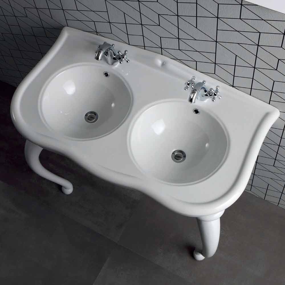mit beinen . Es wird aus glasartigem Porzellan hergestellt , einer Art glasierter Keramik, die bei 1200 ° C gekocht wird . Es ist ein Material, das gegen Säure, Hitze, Stöße und Kratzer beständig ist . Es ist hygienisch , pflegeleicht und verblasst nicht mit der Zeit.