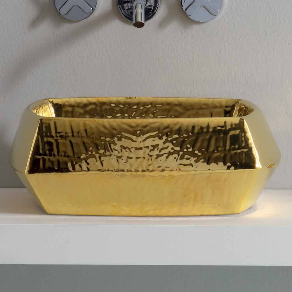 Design-Aufsatzwaschbecken aus goldener Keramik made in Italy Simon