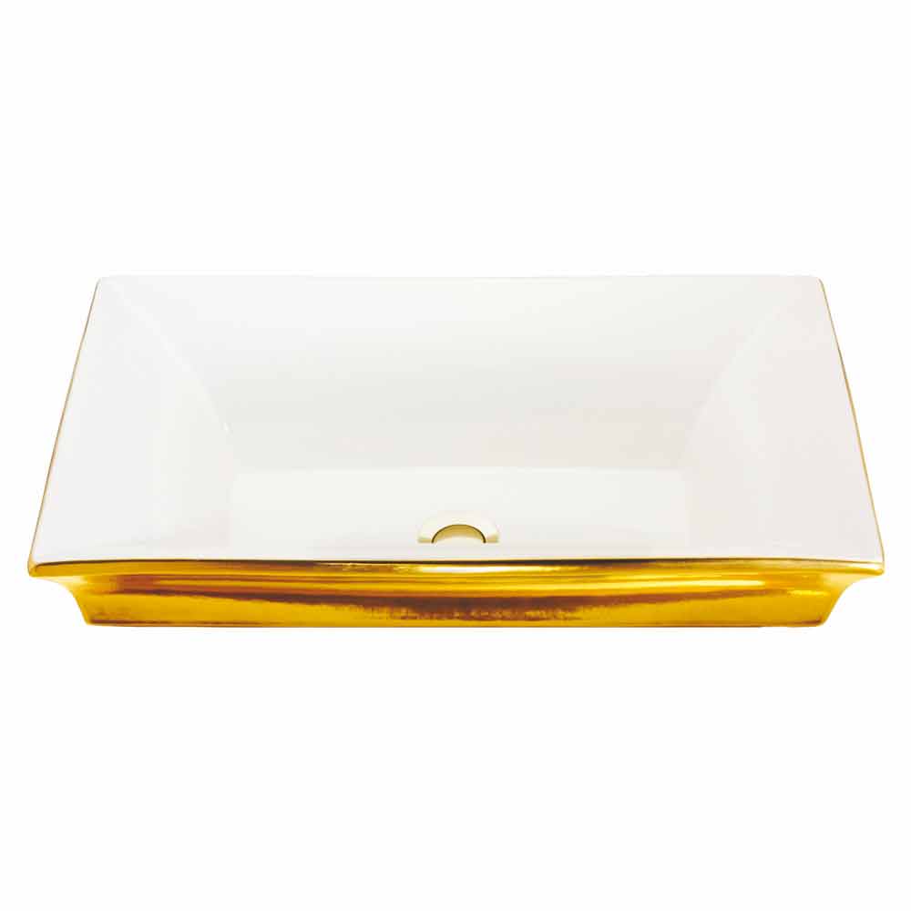 Halbeinbauwaschbecken handgefertigt in Italien aus Fire Clay, innen weiss glänzend und aussen im 24 Karat Gold Finish.