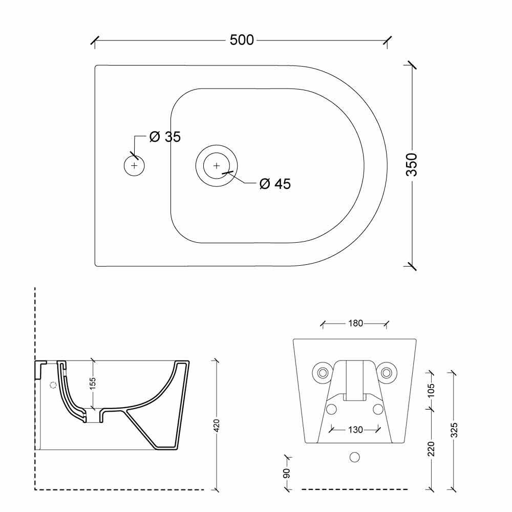 Modernes Wand-Bidet aus Keramik Shine Square 50x35cm, hergestellt in Italien