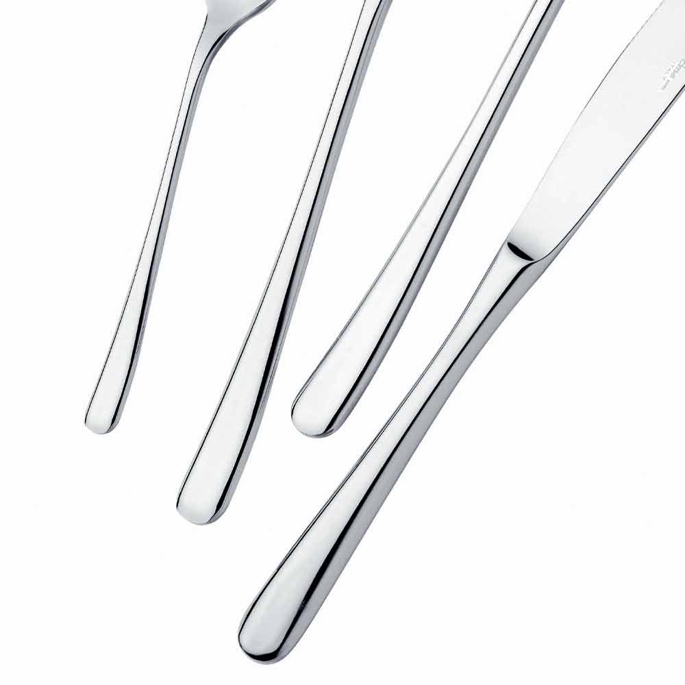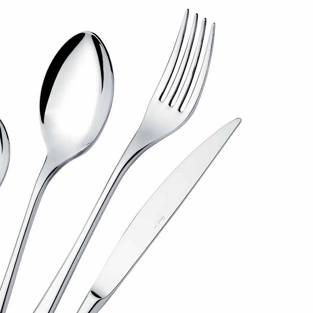 24 modernes Design Edelstahlbesteck mit glänzender Oberfläche, hergestellt in Italien.