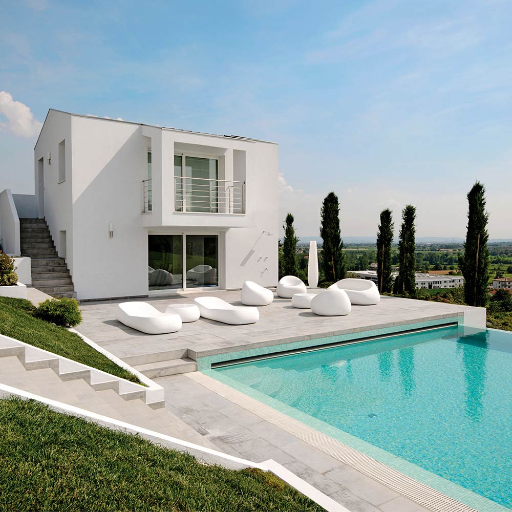 Dieses Outdoor-Sofa zeichnet sich durch weiche und einhüllende Linien aus und passt perfekt in die unterschiedlichsten Umgebungen, um das Zentrum der Aufmerksamkeit zu erobern. Dieses vollständig in Italien hergestellte Produkt weist dank des verwendeten Materials Polyethylen eine hervorragende Stabilität und Festigkeit auf. Es ist in der opaken Version erhältlich, die sich durch hervorragende Beständigkeit gegen Sonne, Stöße und Hitze auszeichnet, oder in der widerstandsfähigen und hell lackierten Version, mit der Sie Spiel erzeugen können von Licht und Reflexionen. Dank seines einzigartigen und innovativen Designs gelingt es ihm, Funktionalität und Praktikabilität zu kombinieren, ohne den visuellen und gestalterischen Aspekt zu vernachlässigen.