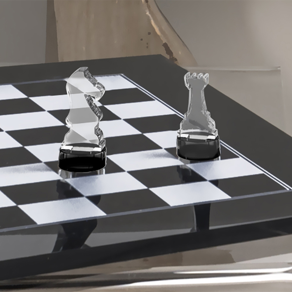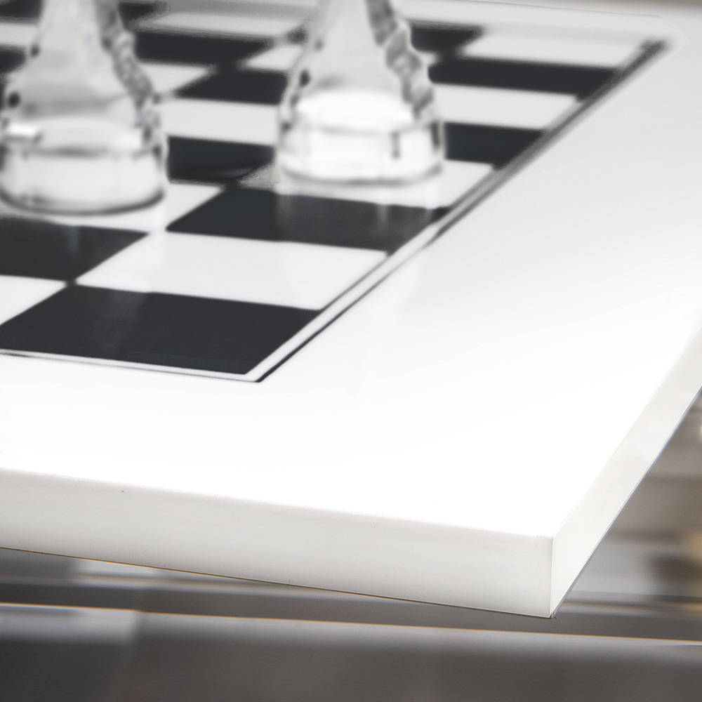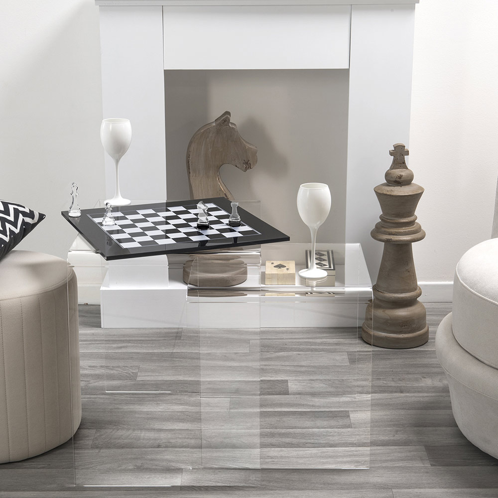 modernes und elegantes Möbelstück und als perfekte Geschenkidee für Spielbegeisterte. Besondere Merkmale dieses Plexiglas-Schachbretts sind die Helligkeit und Brillanz, die über die Zeit konstant und unverändert bleiben.