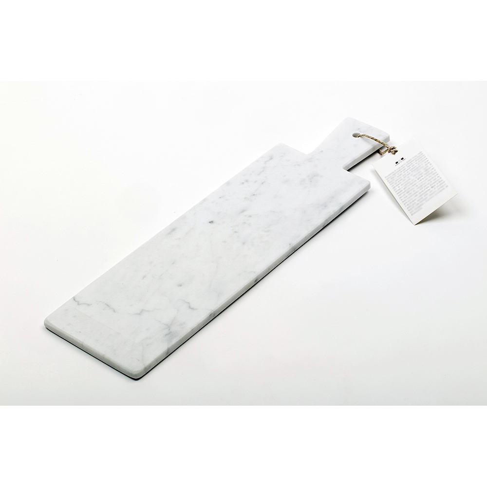 Modernes rechteckiges Schneidebrett Das zeichnet sich durch den weißen Carrara-Marmor aus hohe Qualität für seine Herstellung verwendet. Es enthält ein praktisches Loch am Griff, das zum Aufhängen verwendet werden kann. Es ist als Unikat zu betrachten, da jeder Marmorblock in Adern und Schattierungen unterschiedlich ist.