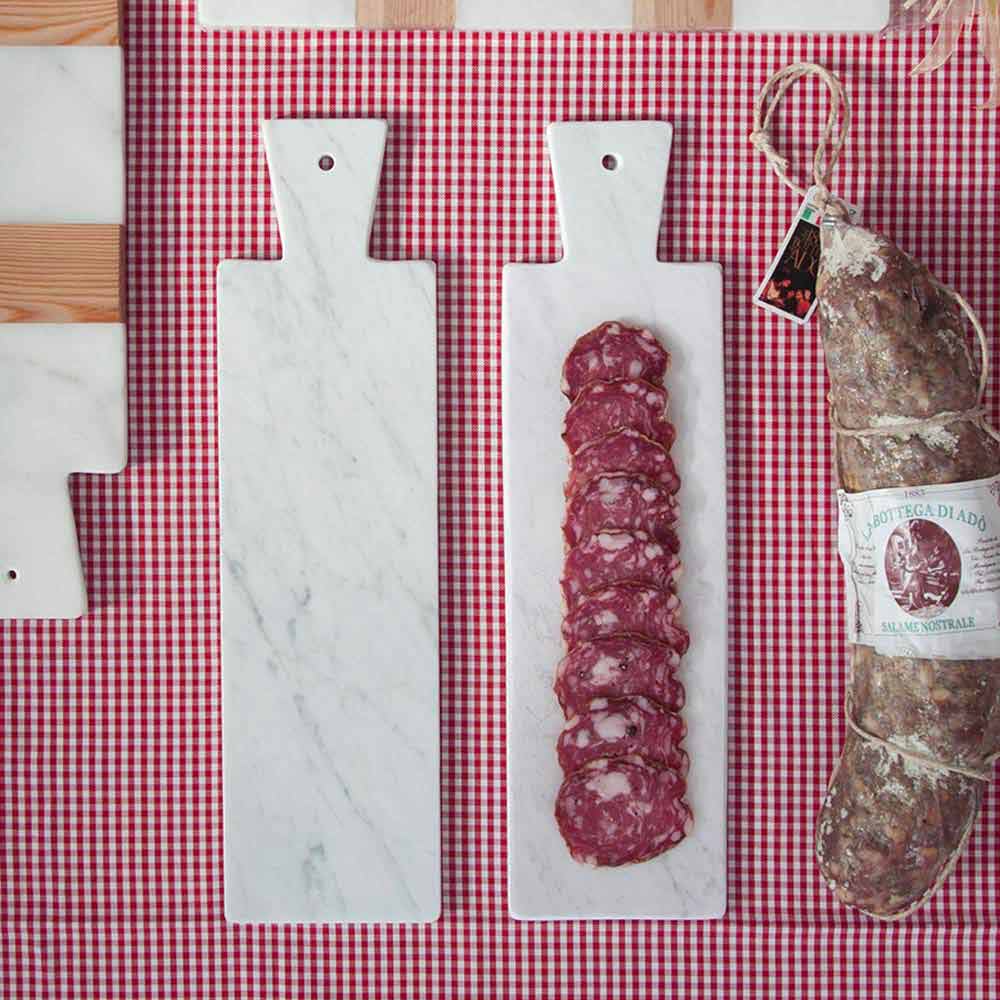 Modernes Schneidebrett aus weißem Carrara-Marmor im Design Made in Italy.